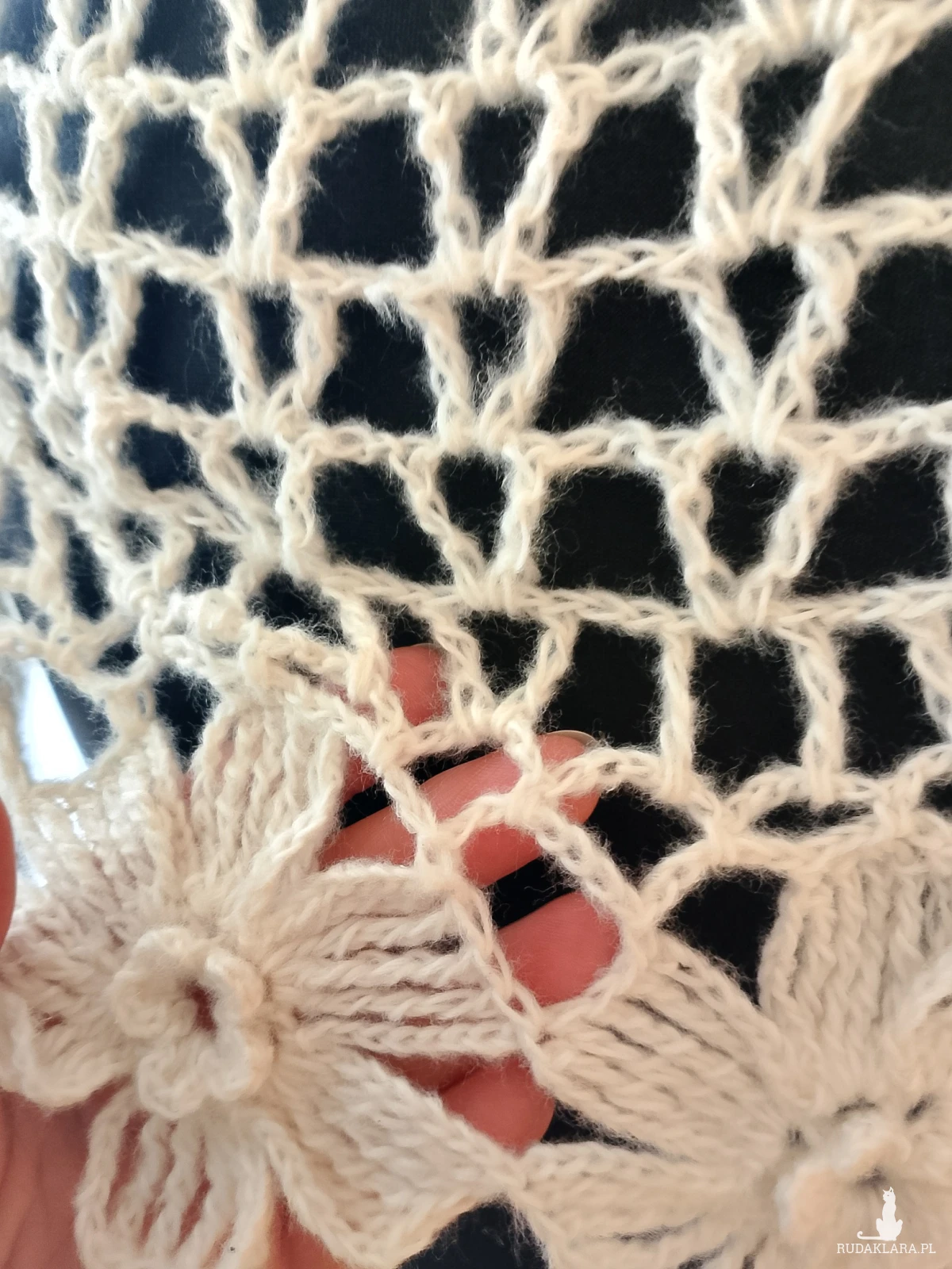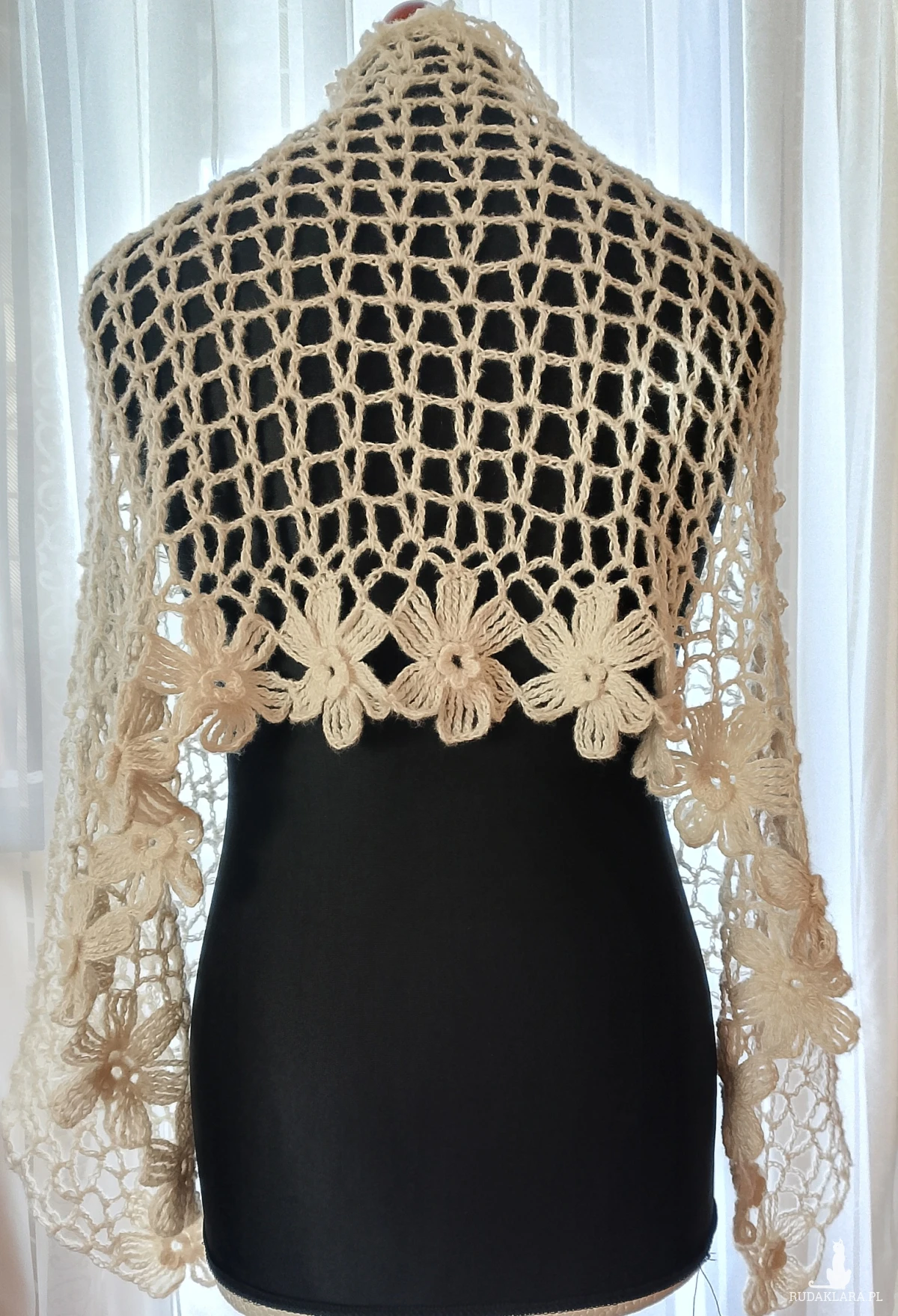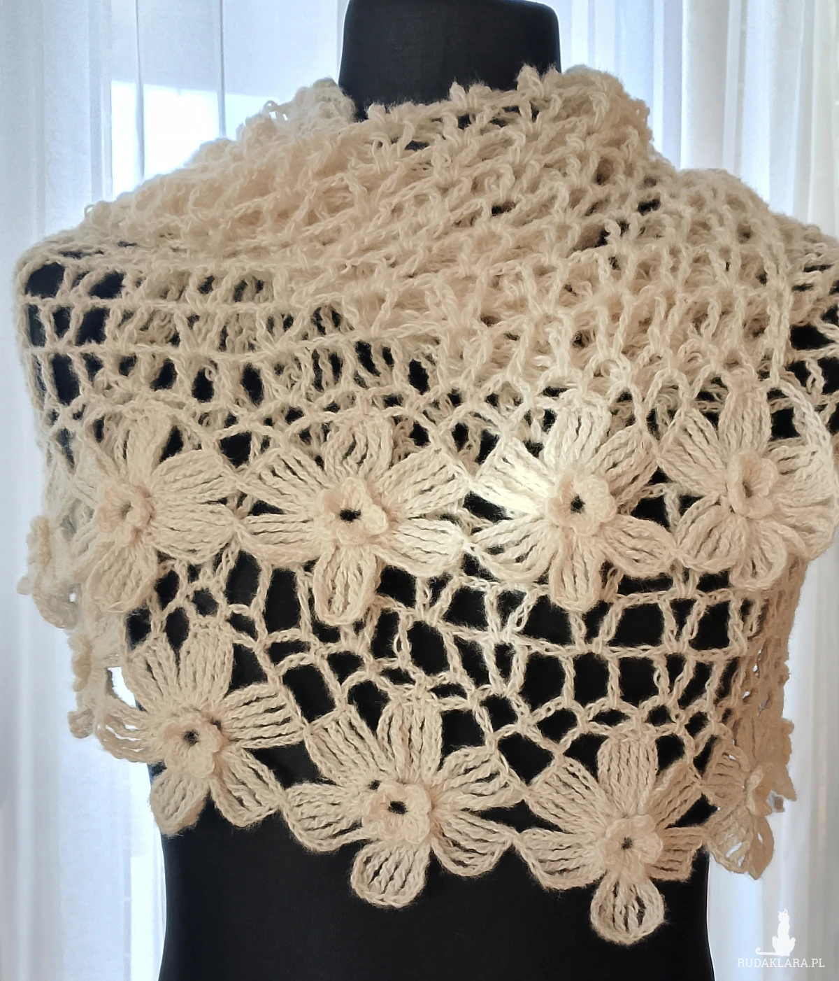 Wyjątkowo piękny szal wykonany w całości ręcznie. Użyto moheru, bardzo