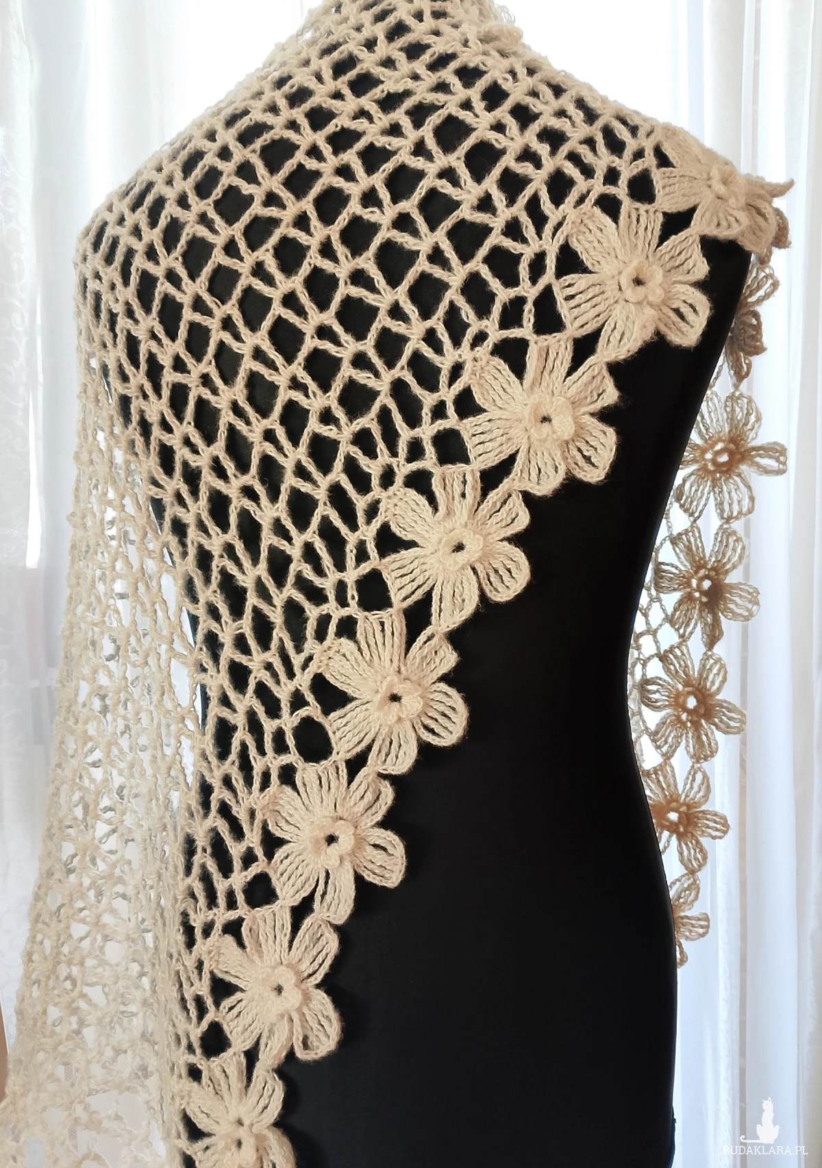 delikatnego w dotyku. Szal jest leciutki i ulotny jak mgiełka, a przy