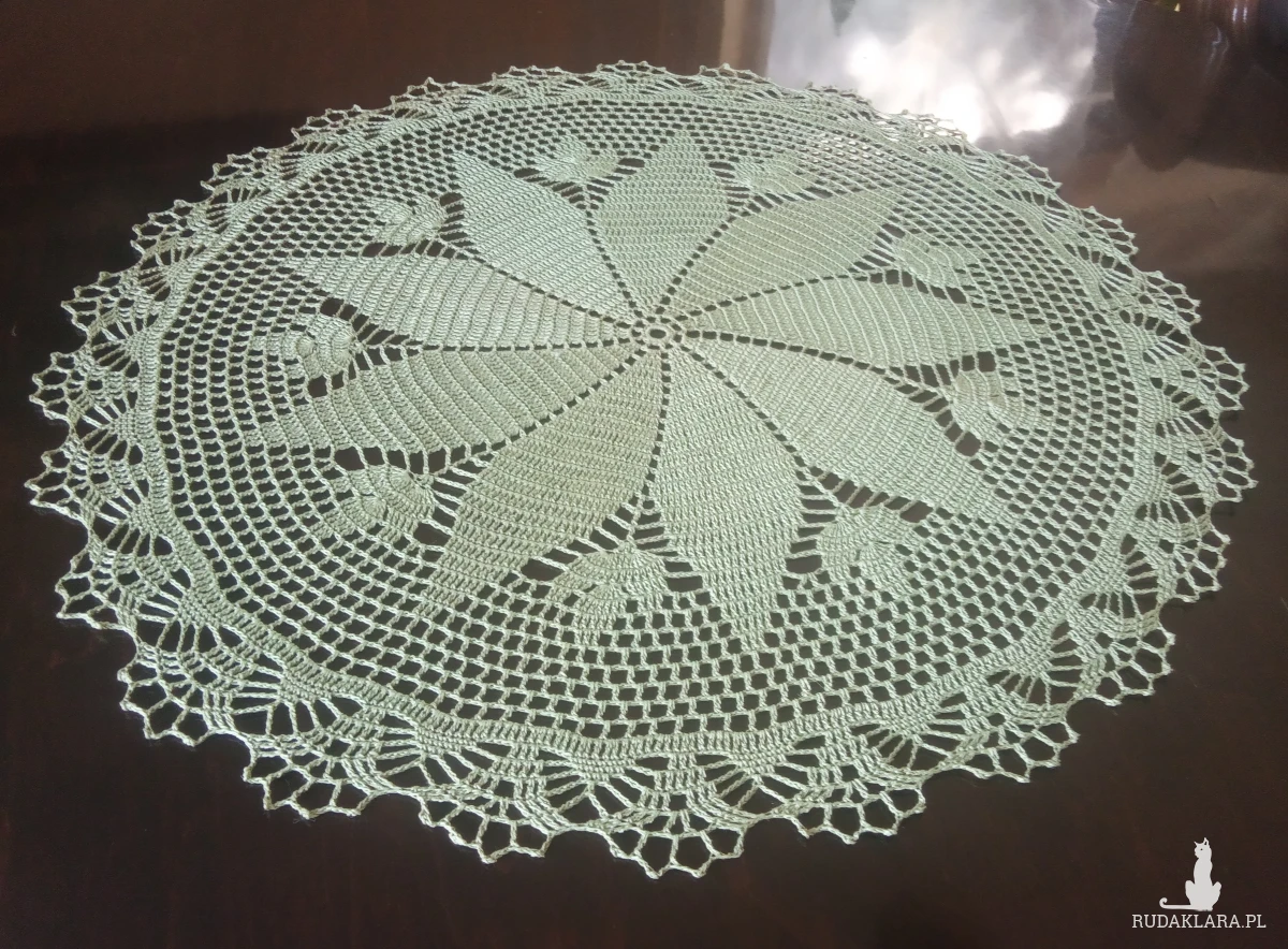 Serwetka wykonana w całości ręcznie z cienkiego kordonka, pięknym