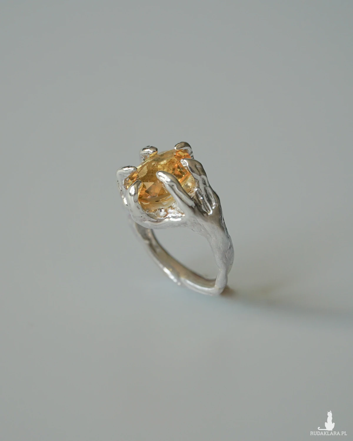 Srebrny wyróżniający się pierścionek Muse o wyrazistej nabudowie z cytrynem. Wykonany w srebrze próby 925.