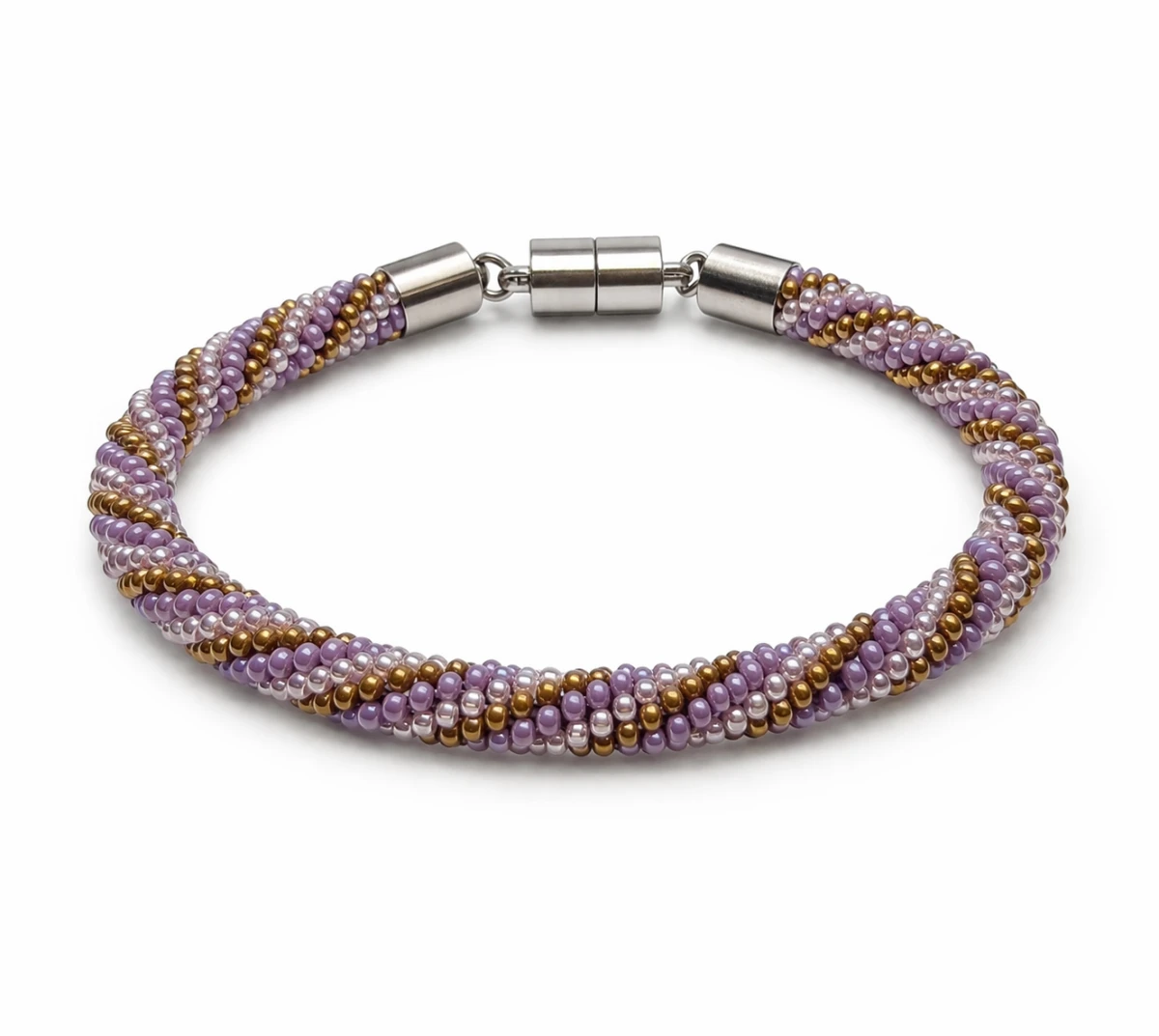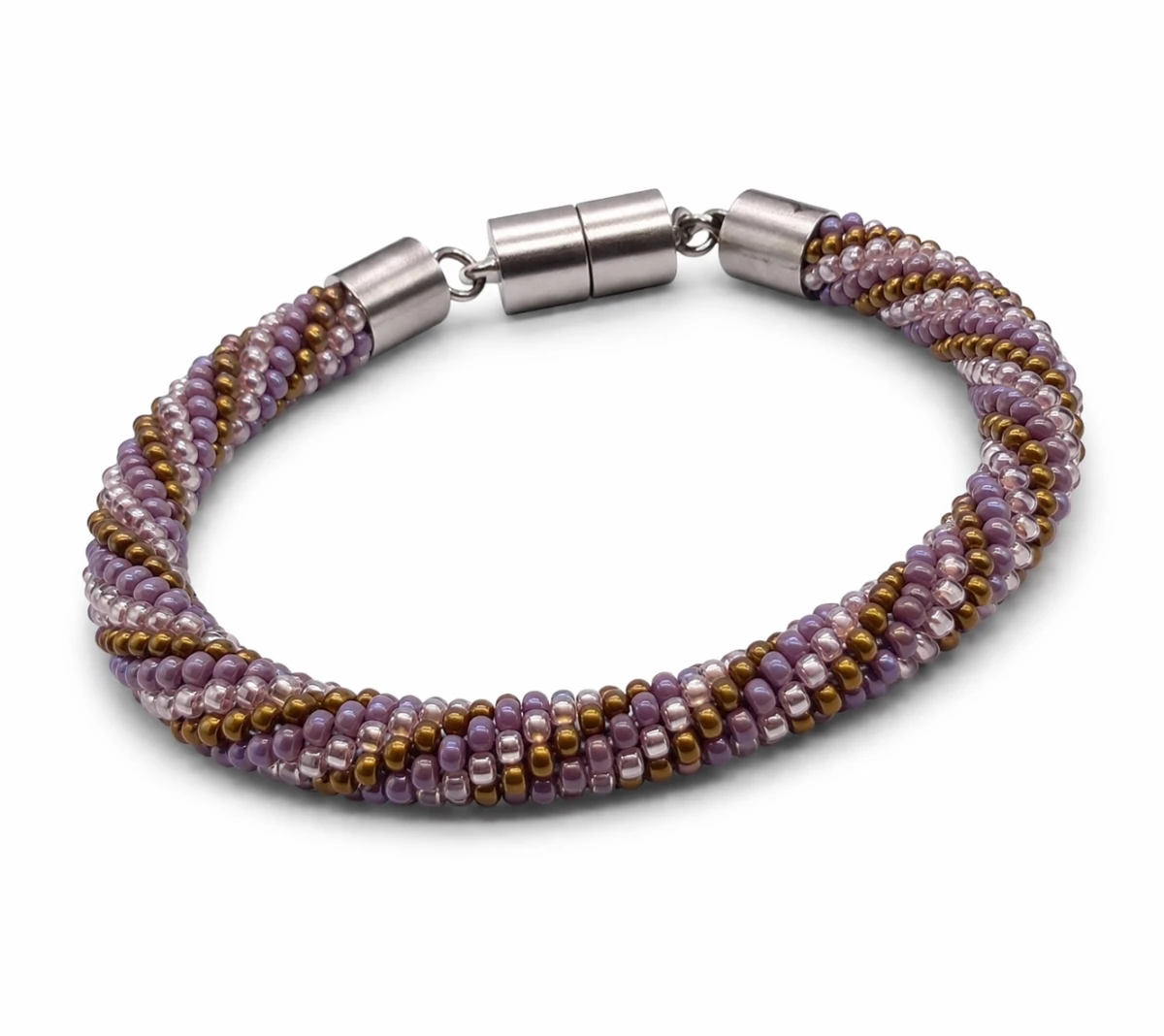 spiralnym splotem, który łączy w sobie odcienie stonowanego fioletu,