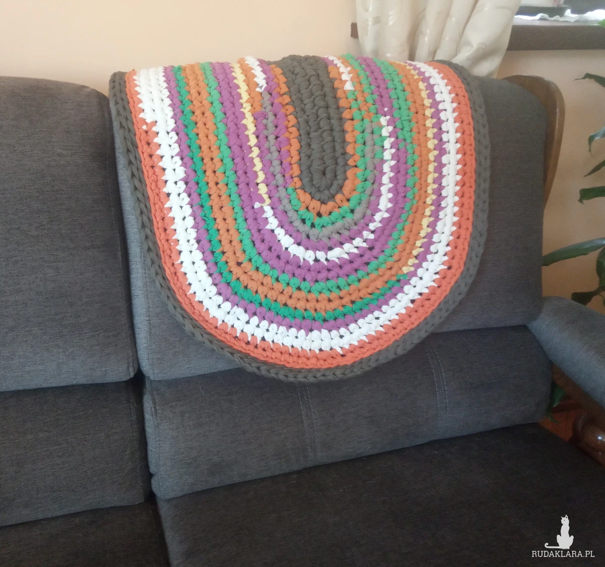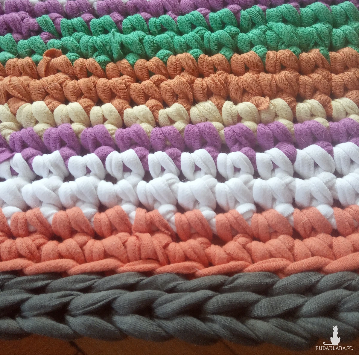 Dywan Eco-Etno Zero Waste, wykonany ręcznie z pociętych w paski