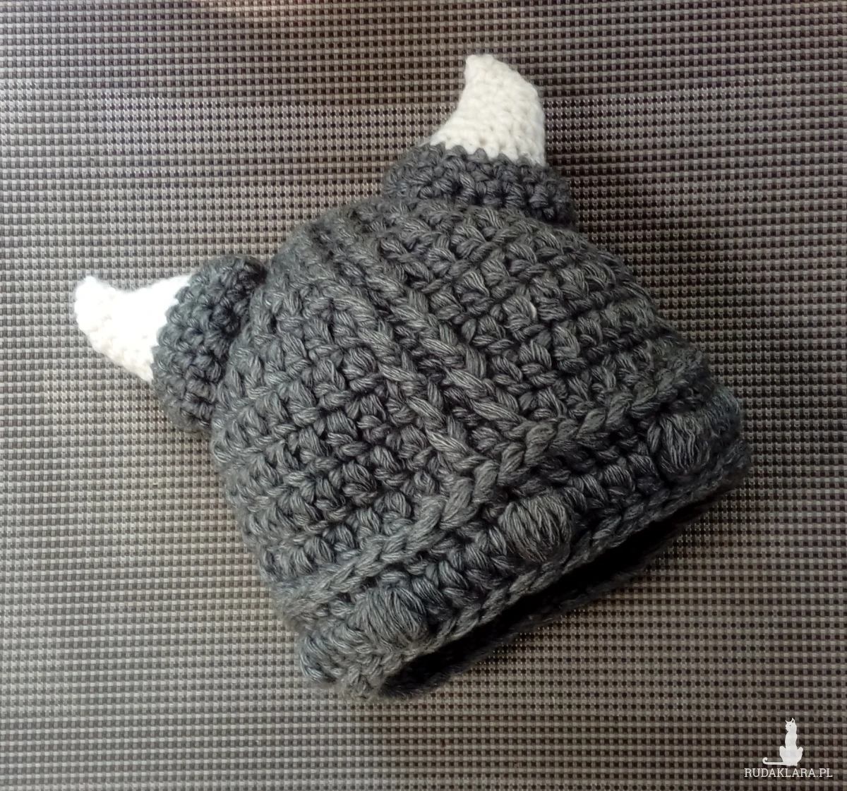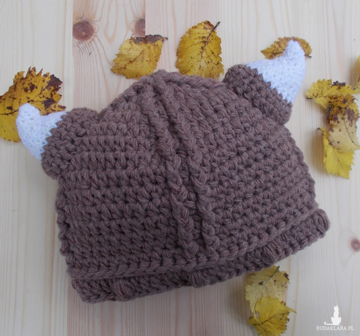 Czapka "Viking" inspirowana hełmem wikingów, wykonana z dbałością o szczegóły. Włóczkowy hełm i groźne rogi wzbudzą należyty respekt;). Doskonały i oryginalny prezent dla dziecka. Czapka na pewno będzie często noszona nie tylko w chłodne dni, ponieważ dziecko z pewnością chętnie użyje jej również jako rekwizytu dla swoich zabaw. Czapkę można także wykorzystać do sesji fotograficznej.