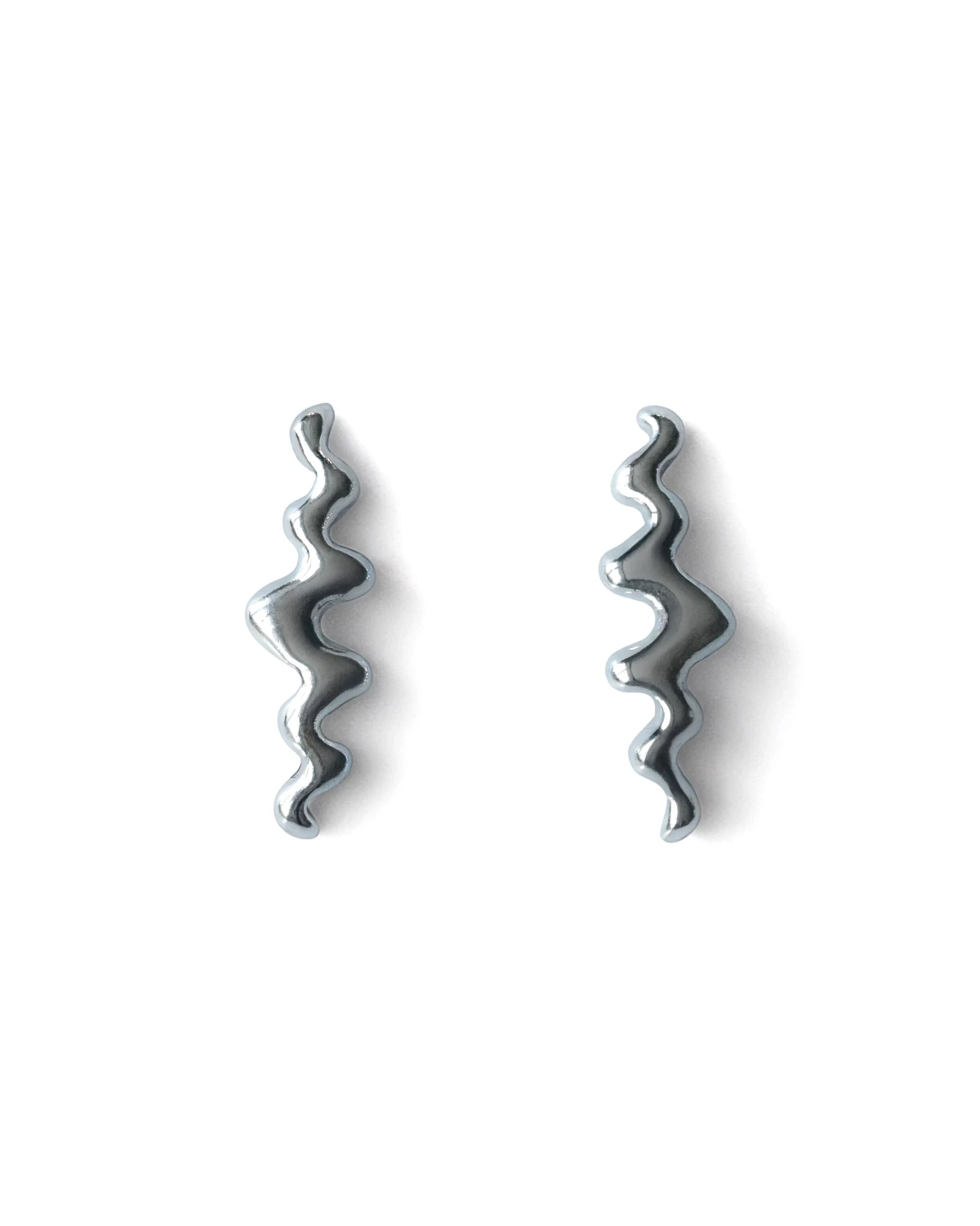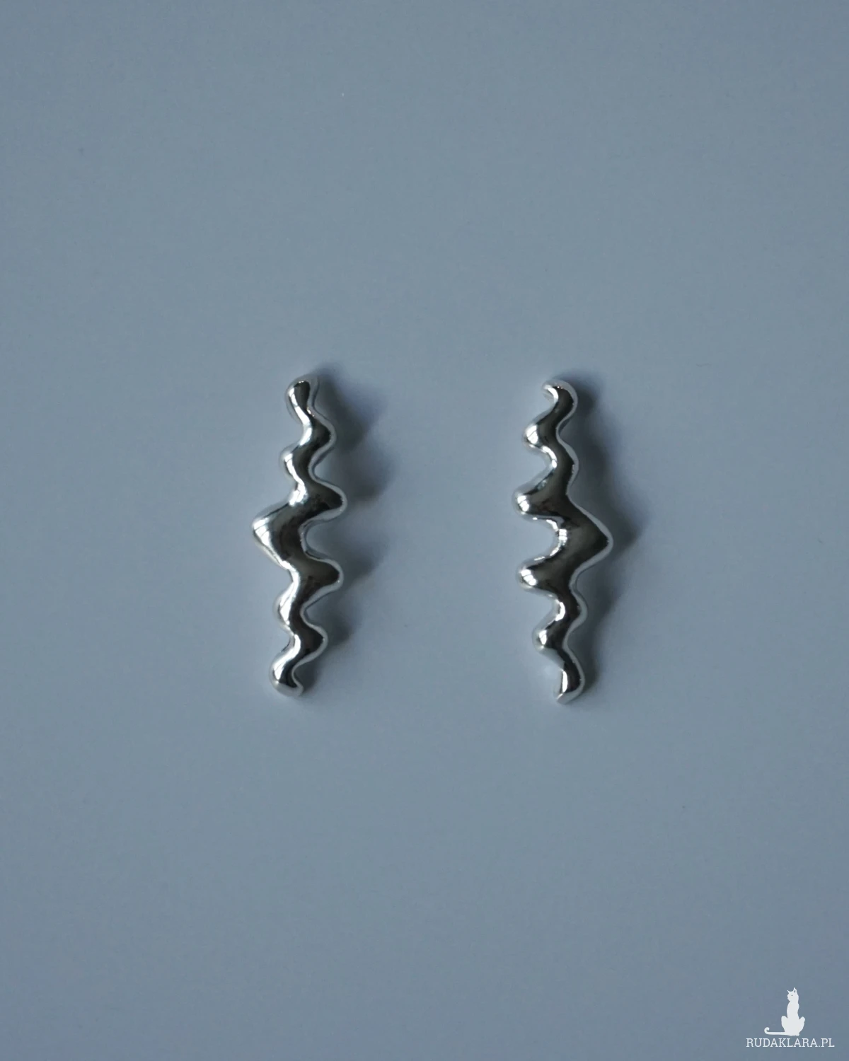 Srebrne kolczyki z kolekcji DRIPPY. Rzeźbione ręcznie w wosku, następnie odlane w srebrze próby 925 i ręcznie wykończone.