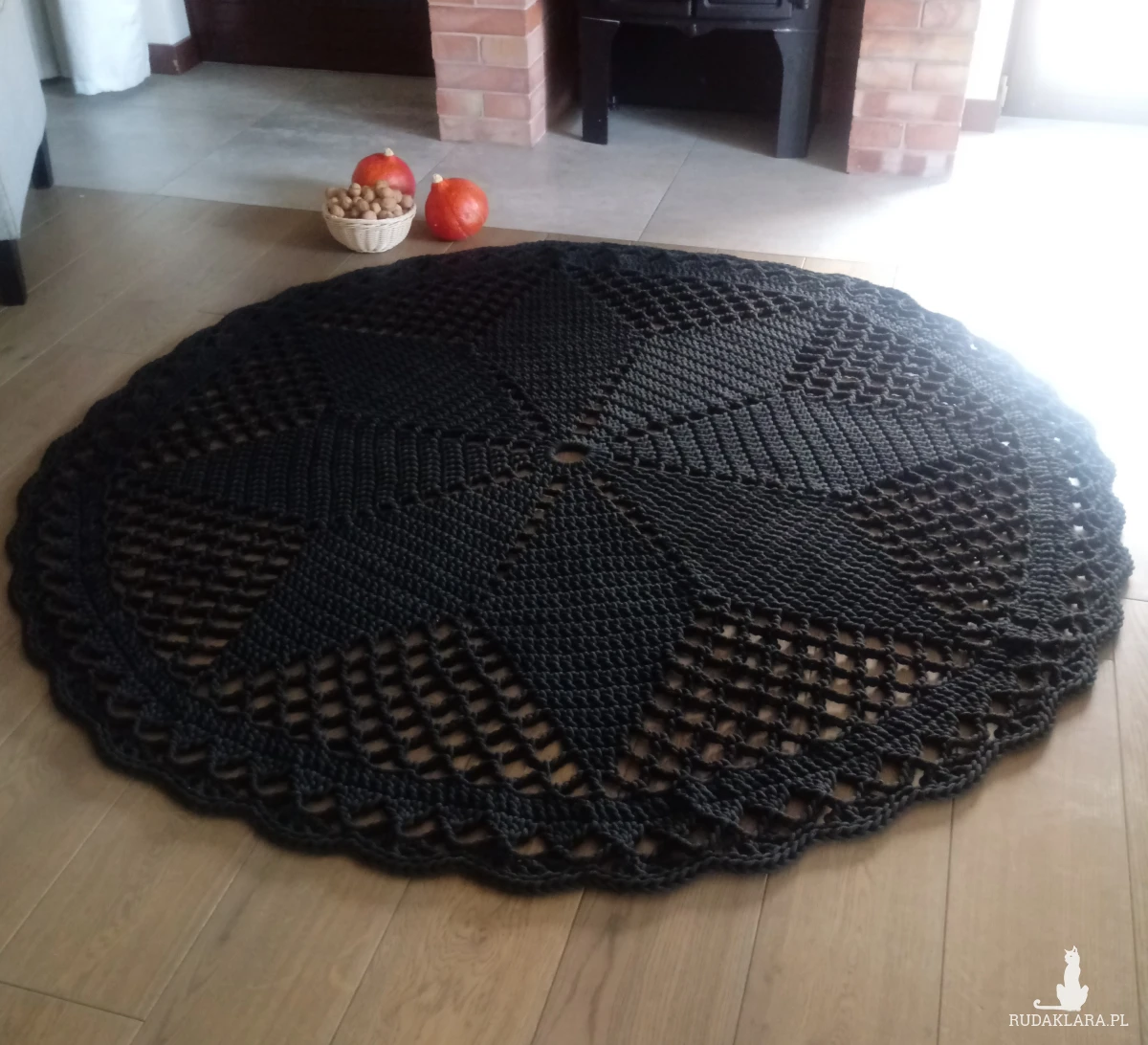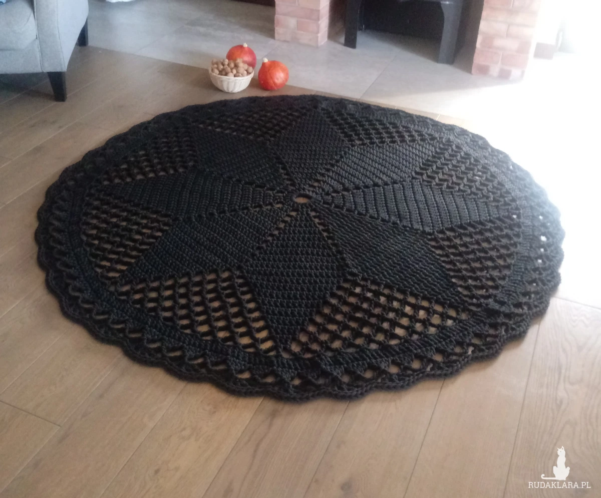 dwustronny. Średnica 180 cm, kolor czarny. Ozdobi każde wnętrze.
