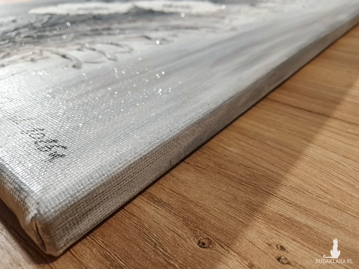 zmieniająca się w zależności od kąta padania światła. Estetycznie zamalowane boki, dzięki czemu obraz jest gotowy do zawieszenia i nie wymaga dodatkowej oprawy w ramę