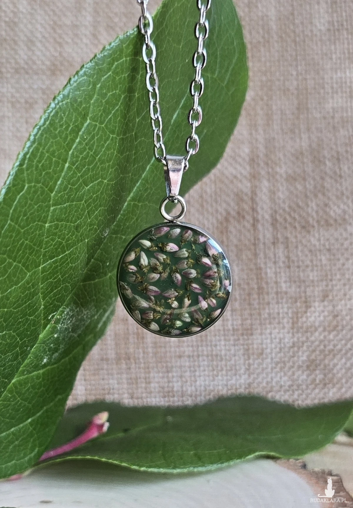 Oferuję Państwu unikalną biżuterię. Zawieszka jest wykonana z suszonych kwiatów i żywicy epoksydowej. Biżuteria jest wspaniałym i oryginalnym prezentem na lata.