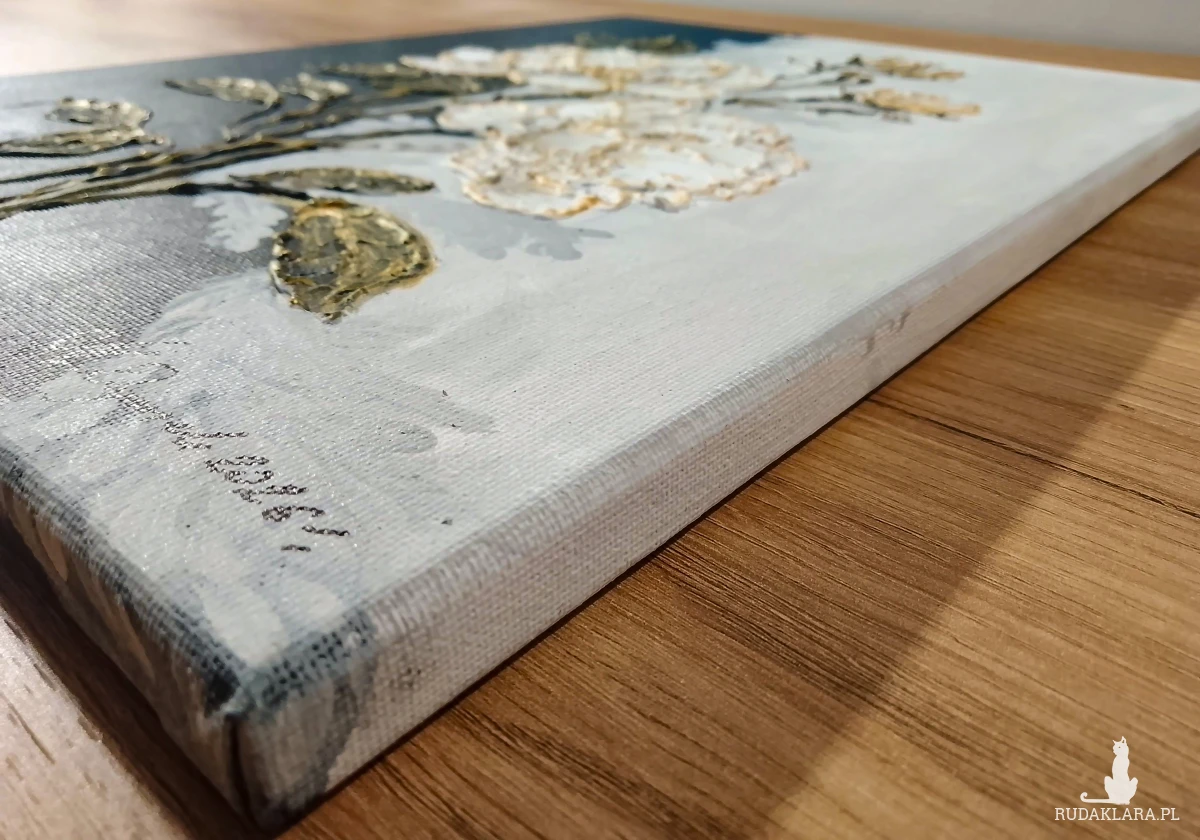 Obrazy strukturalne, łączą w sobie nowoczesną formę z głęboką teksturą 3D oraz pieczołowicie nakładanymi złoceniami. Trójwymiarową strukturę można poczuć pod palcami, a wyraźne pociągnięcia szpachli i lśniące złocenia sprawiają, że dzieło mieni się i "ożywa" w zależności od kąta padania światła. Praca została stworzona z myślą o wnętrzach, w których sztuka ma być nie tylko dekoracją, ale i namacalnym doświadczeniem. Każdy egzemplarz jest niepowtarzalny i jedyny w swoim rodzaju. Nie jest to wydruk, lecz autorskie dzieło z wyraźnym śladem ręki artysty. Idealne nad sofę w salonie, wezgłowie łóżka w sypialni, prestiżowy akcent w biurze lub unikalny prezent dla kogoś wyjątkowego..