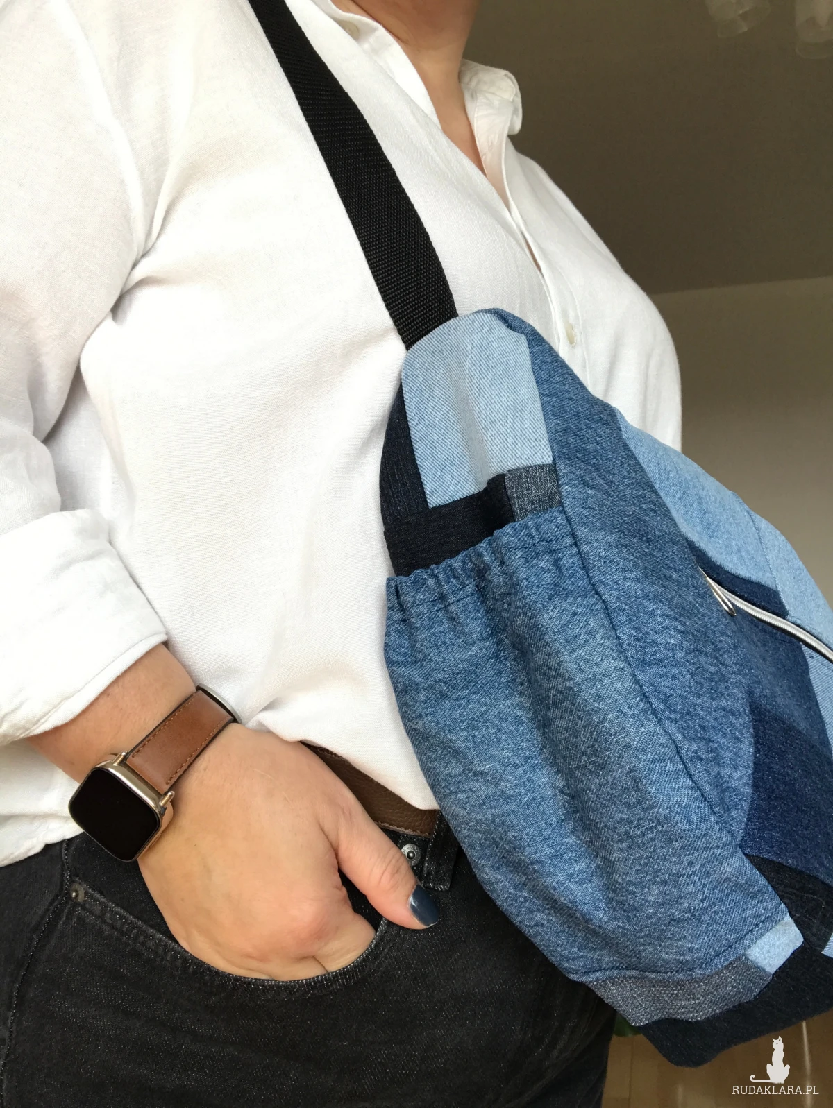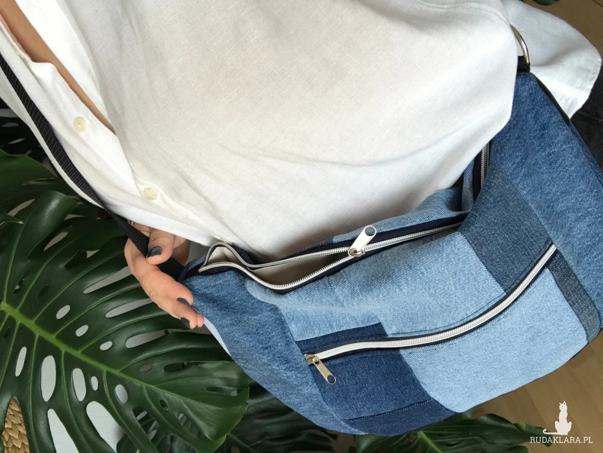 Ta torebka powstała z recyklingowanych spodni jeansowych.