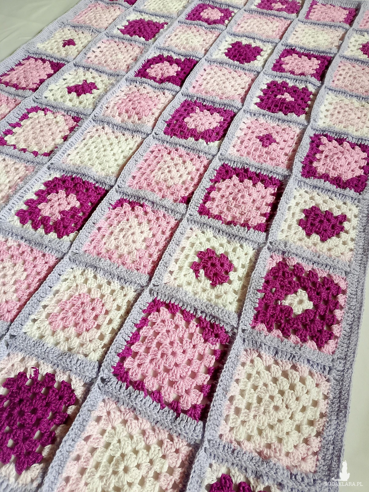 Użyto ciepłej i miłej w dotyku włóczki akrylowej. Dzięki starannemu wykonaniu narzuta jest dwustronna. Z powodzeniem może zostać użyta również jako ciepły kocyk, pled lub rekwizyt do sesji foto. Idealna na oryginalny a jednocześnie praktyczny prezent.