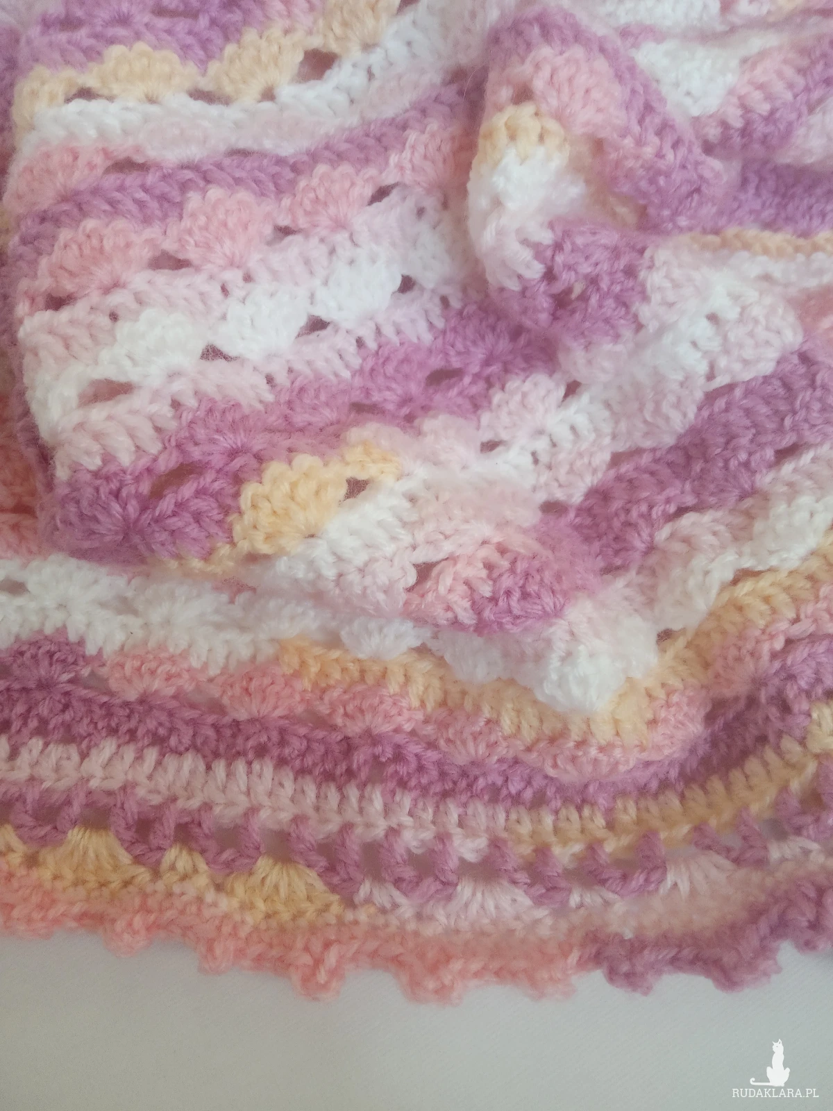 Ciepły, miękki i przytulny kocyk wykonany ręcznie z cieniowanej włóczki akrylowej. Dzięki starannemu wykonaniu kocyk jest dwustronny. Sprawdzi się w domu, na spacerze, w podróży, do spania lub do sesji foto. Autorski projekt i wykonanie.