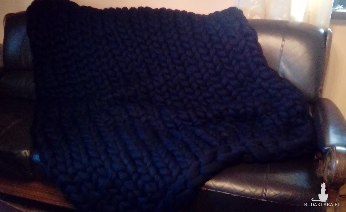 Duży koc z merynosa, czarny