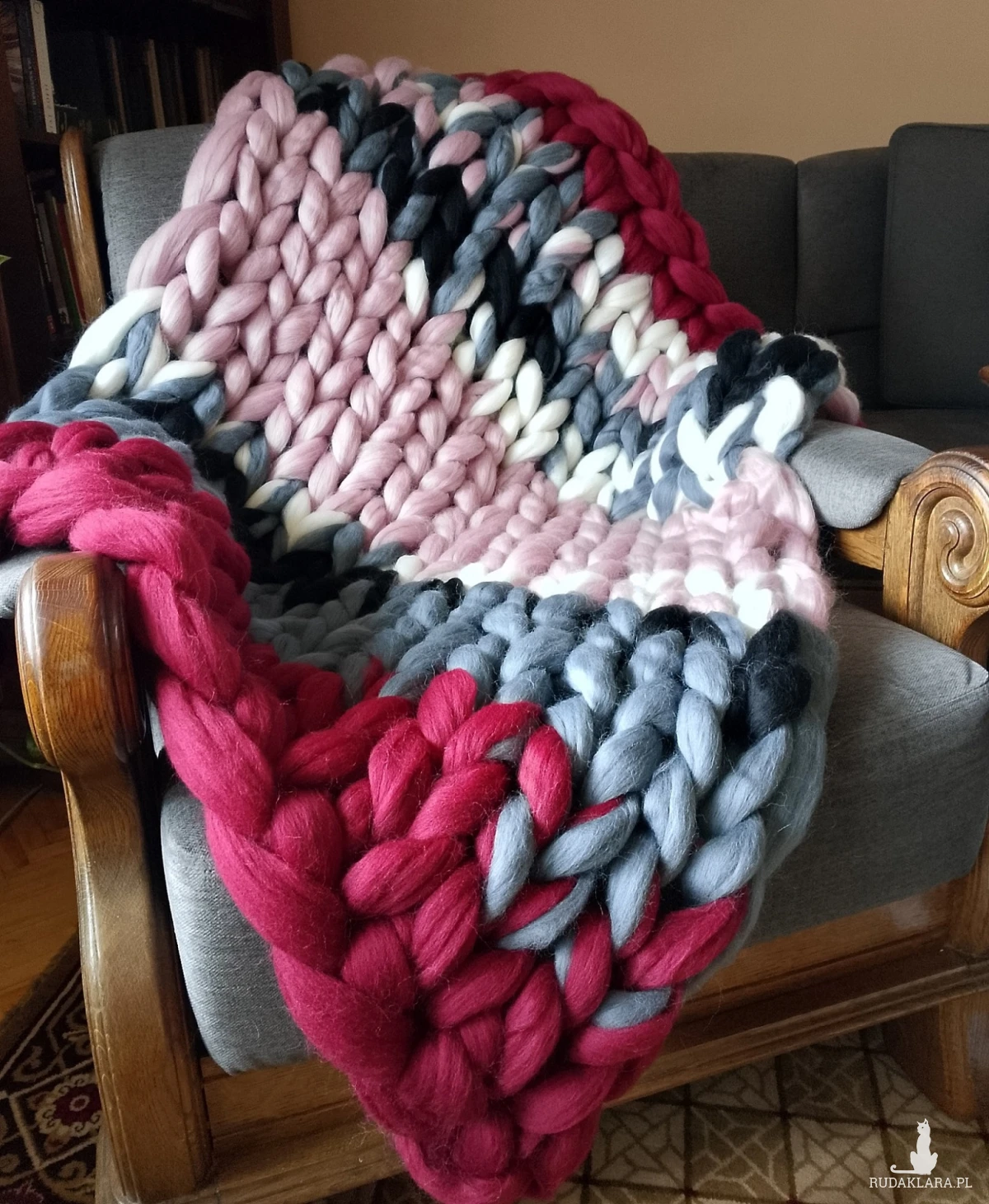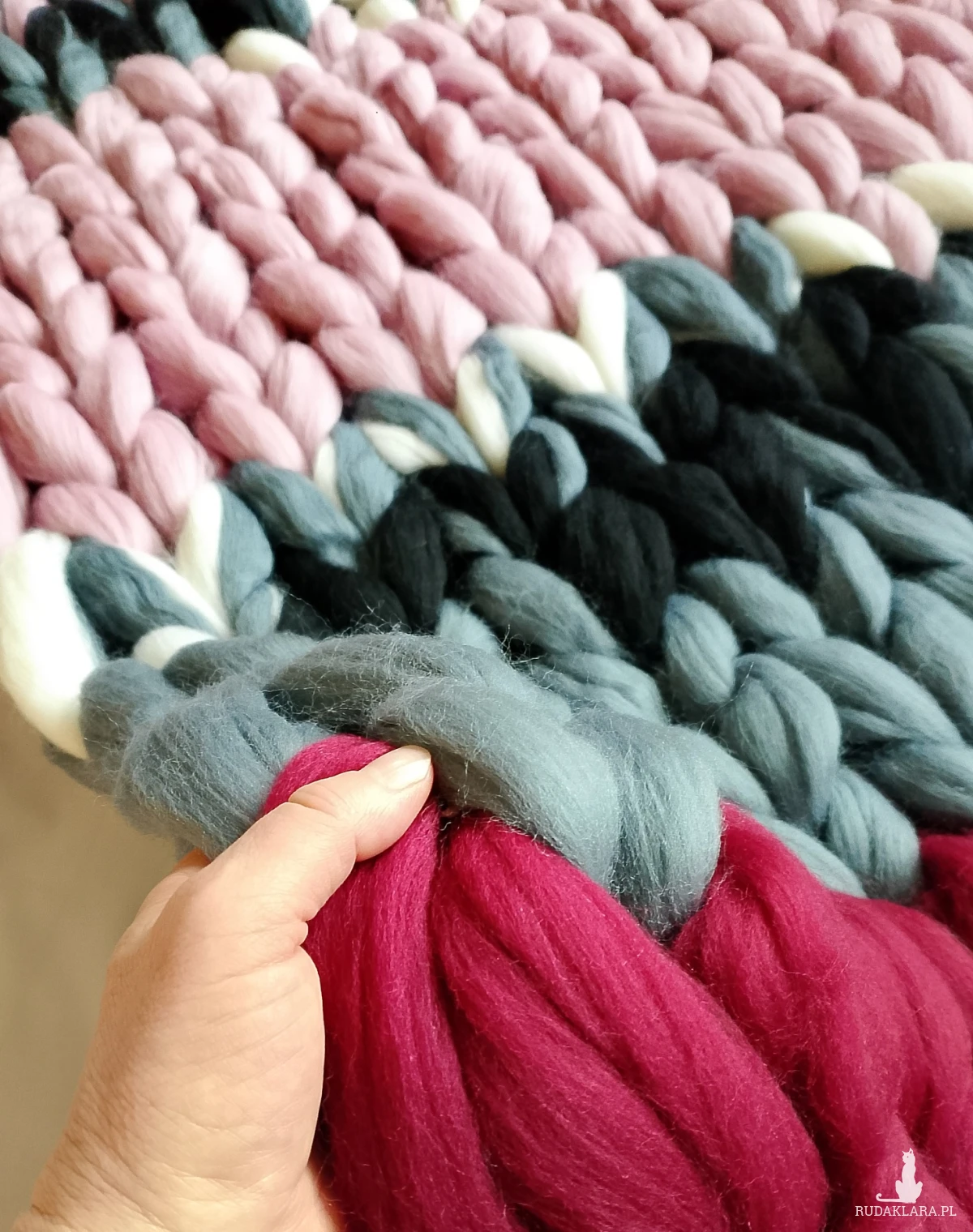 Koc wykonany ręcznie z wysokiej jakości wełny czesankowej z merynosów.