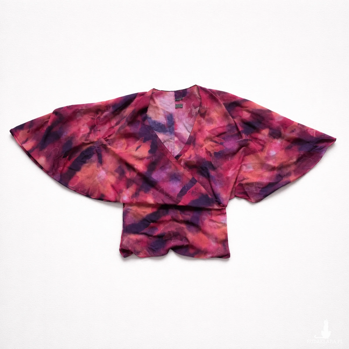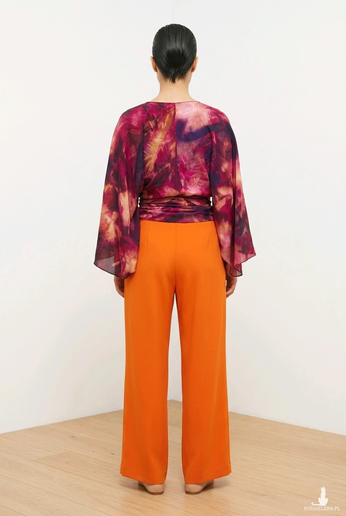 Bluzka w odcieniach Bordo i fioletu firma mango wspaniałe rękawy materiał to wiskoza długość bluzki 75 cm pas mierzony na płasko 45 cm bluzka wygląda spektakularnie ale ma bardzo duży dekolt więc dobrze jest mieć t-shirt pod spodem materiał wiskoza