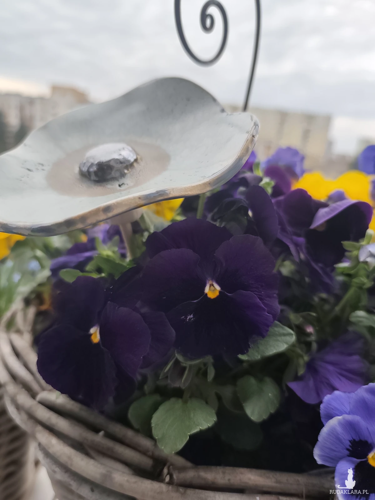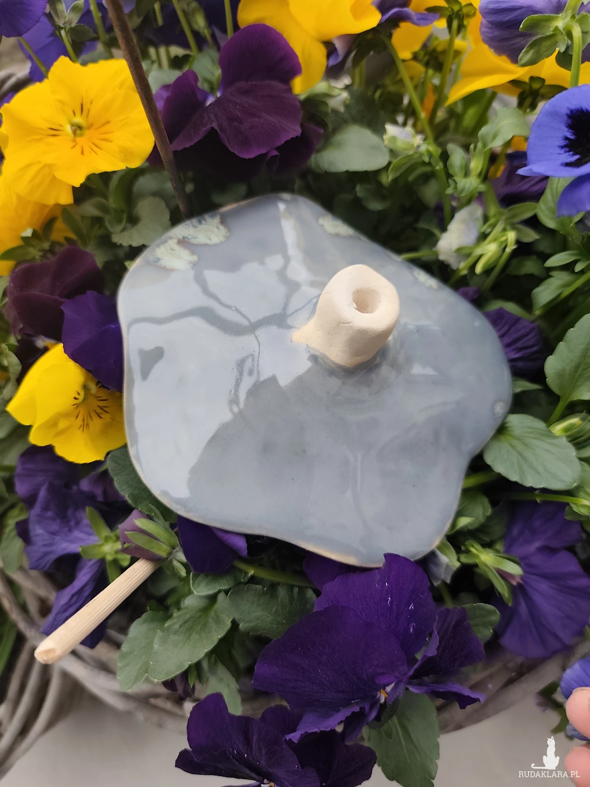 Kwiat ceramiczny - poidło dla owadów. Wykonany ręcznie, szkliwiony i zamontowany na tyczce bambusowej, piękny dodatek do ogrodu lub na balkon.