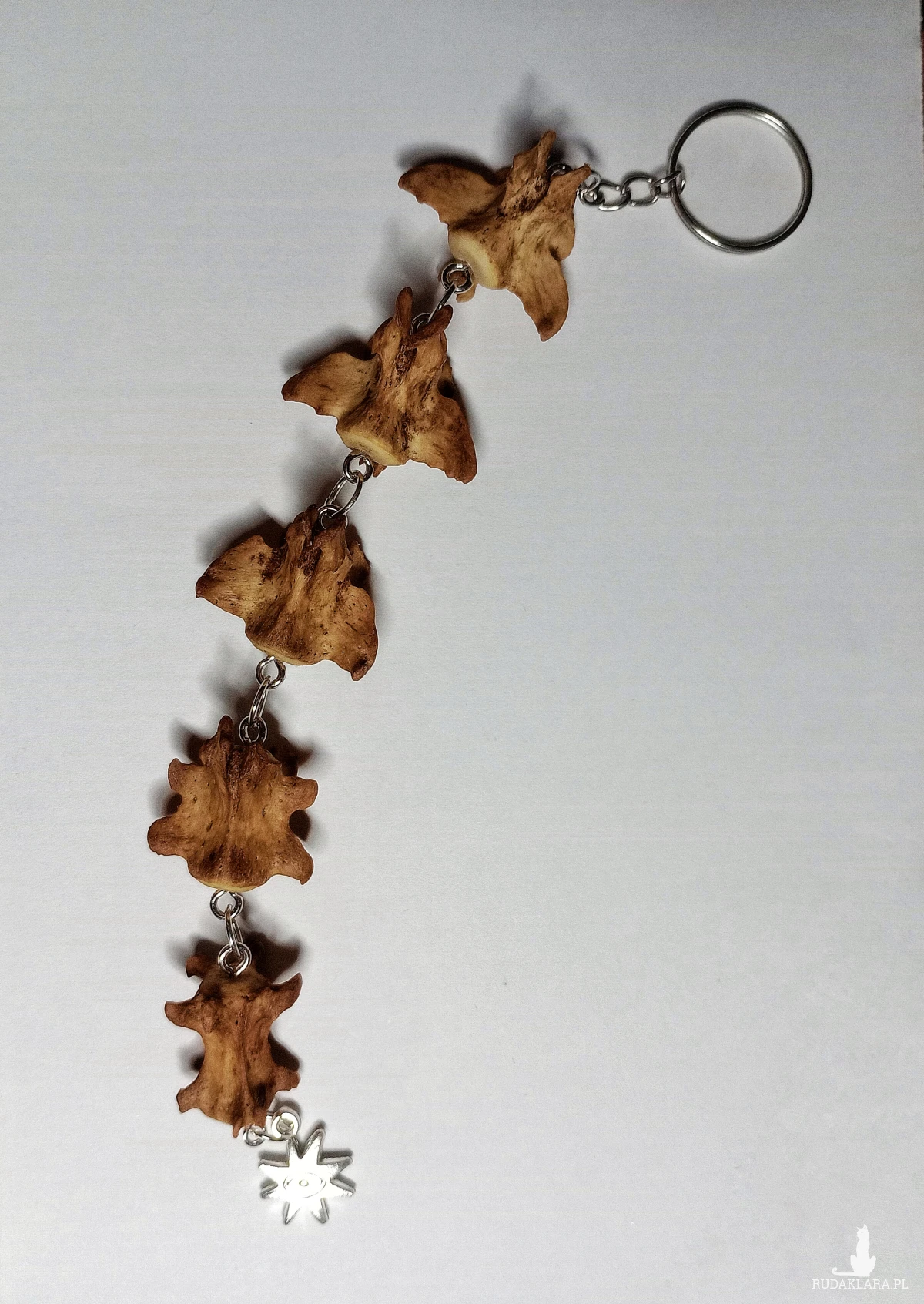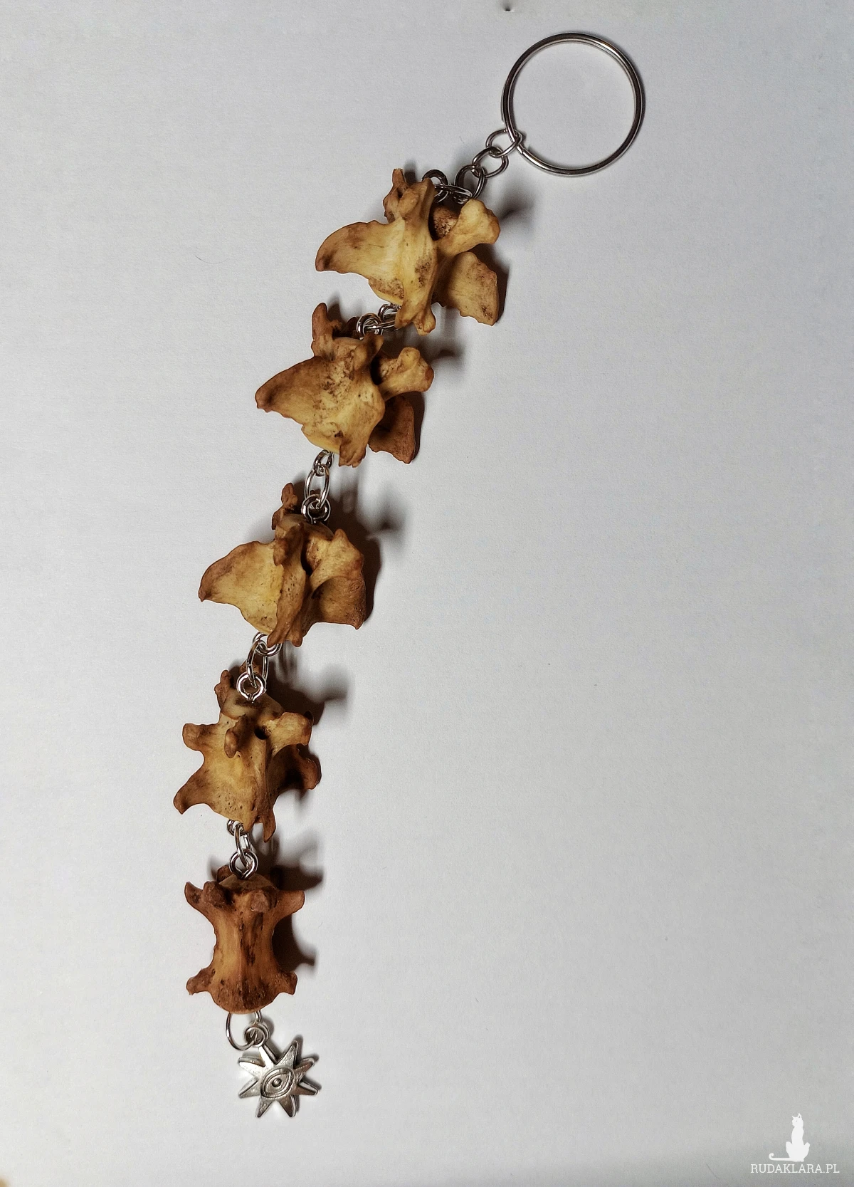 Brelok wykonany z kręgów ogonowych barwionych naturalnymi barwnikami (kawa i herbata) z zawieszką w kształcie gwiazdy z okiem ✨