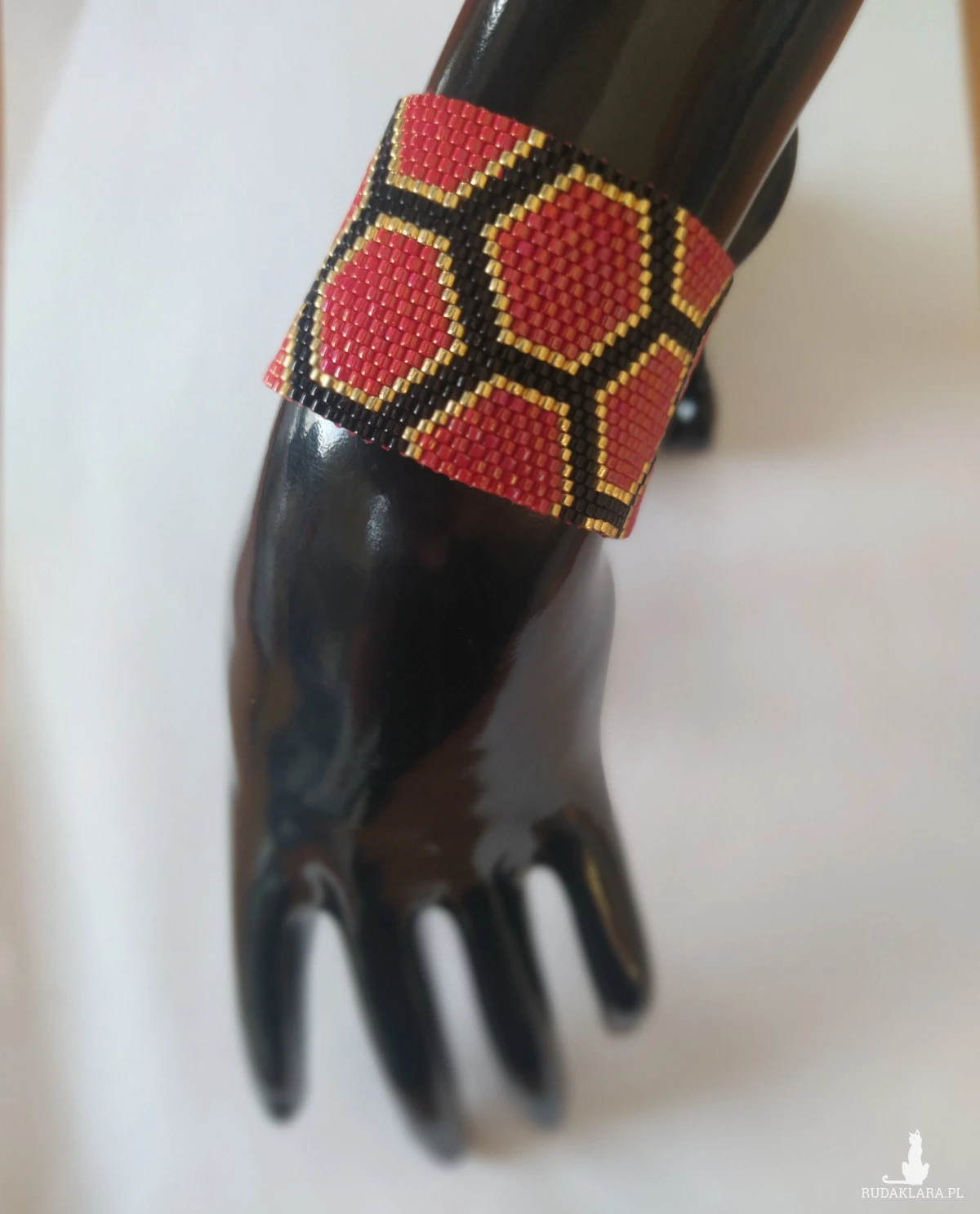 - Technika: Ręczny splot igłowy (Beadweaving)