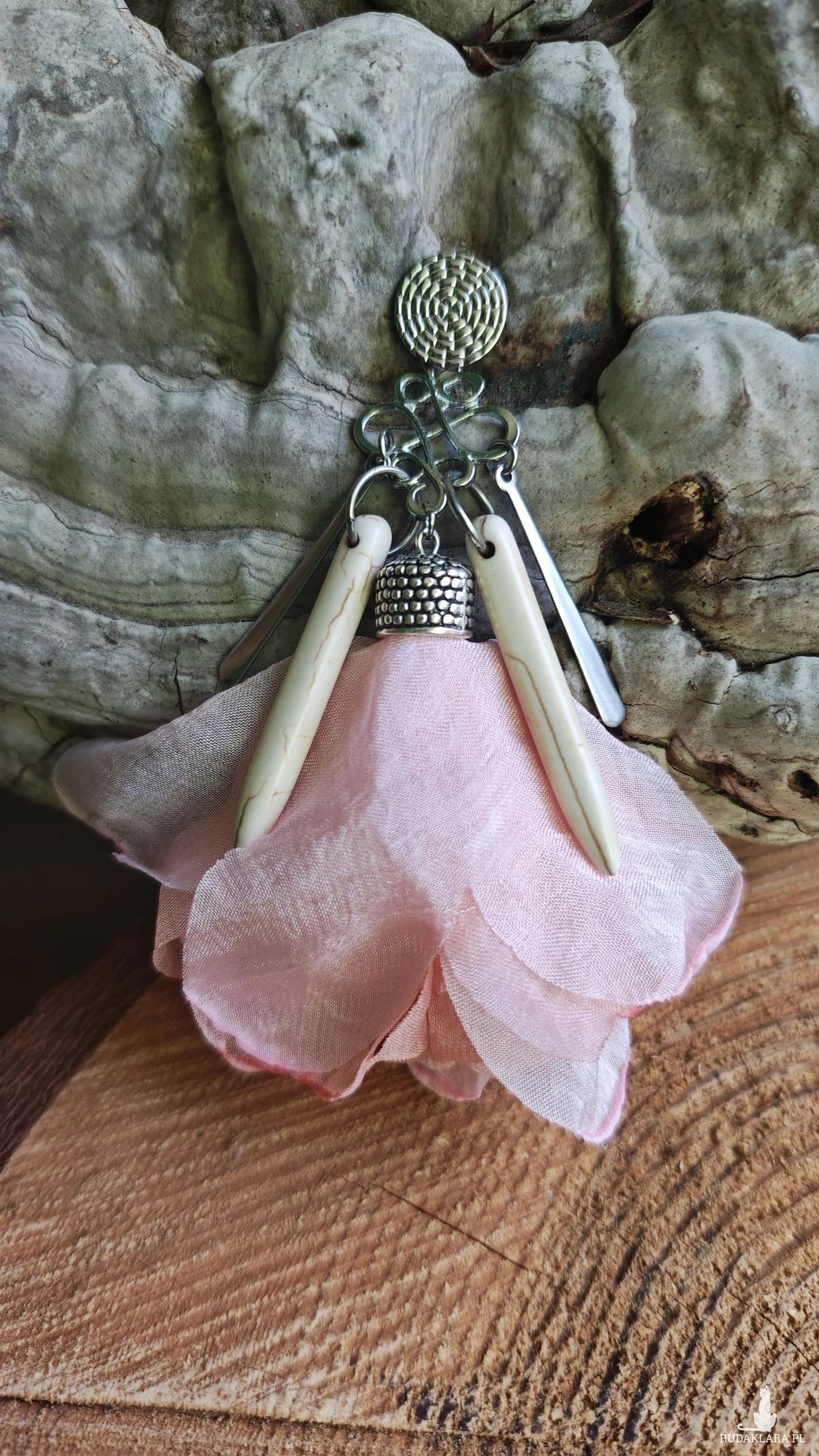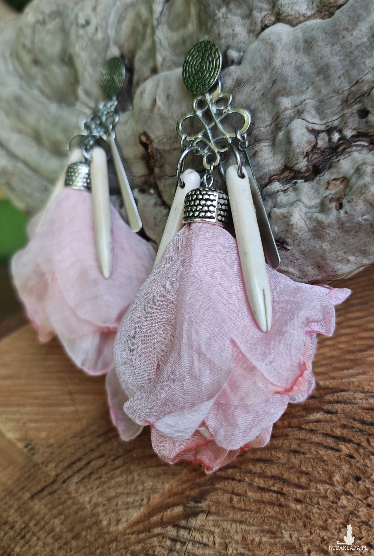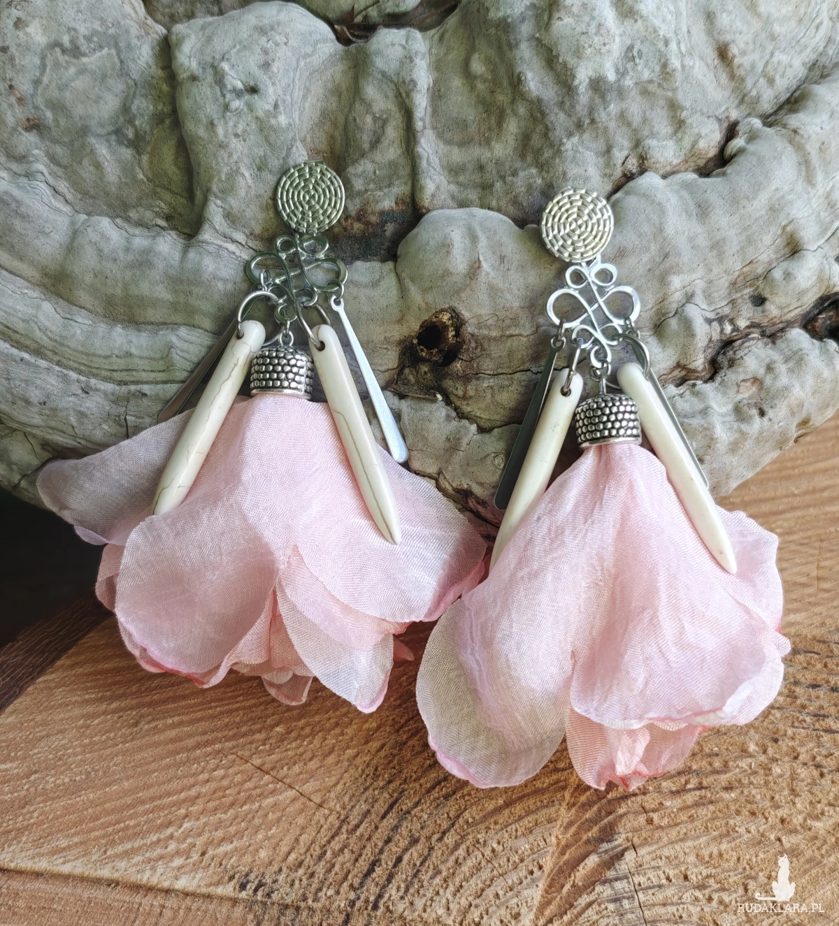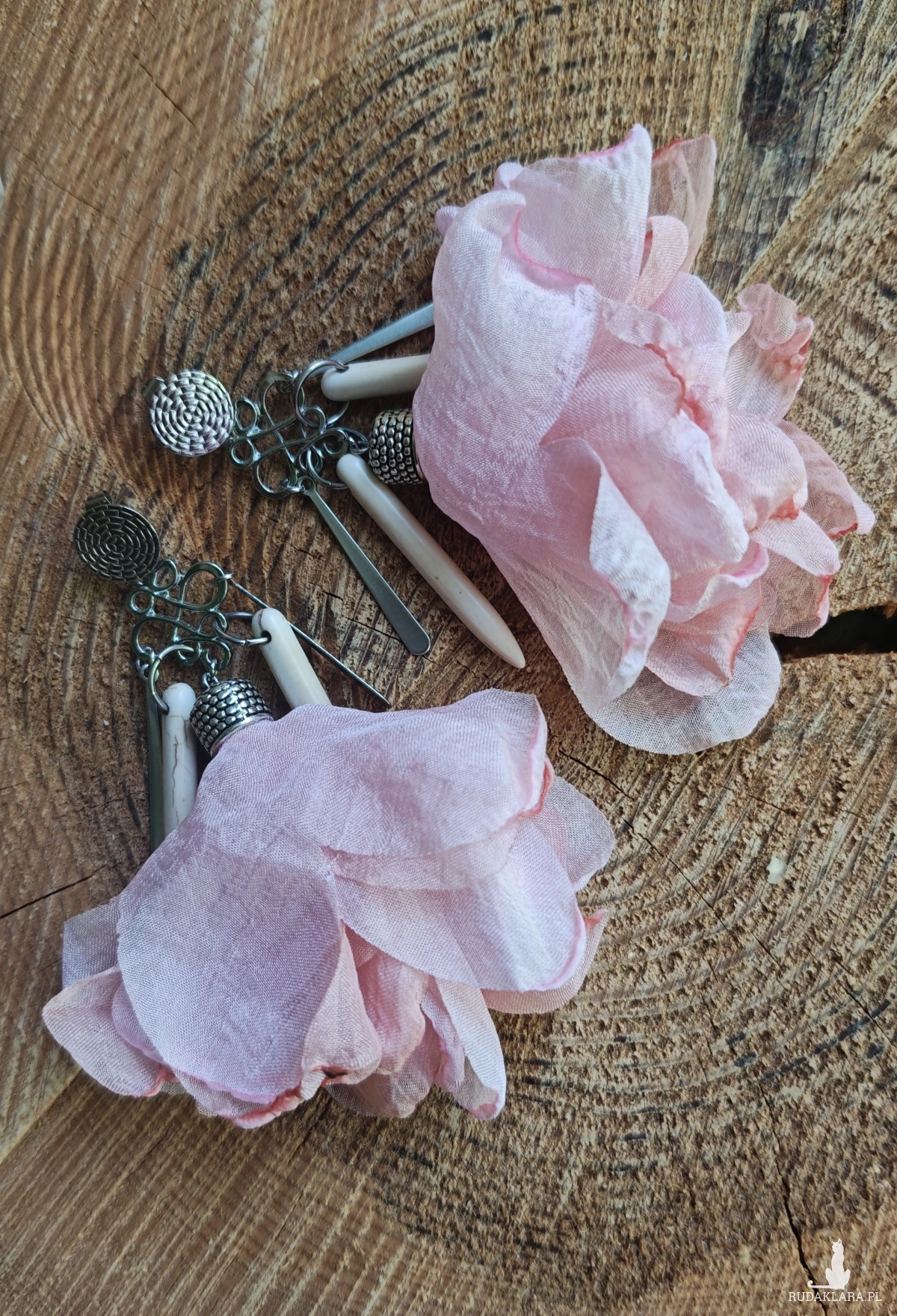 ,, baletnica w jasnym różu,, to lekkie i zwiewne kolczyki wykonane z tiulowego kwiatka chwosta i elementów w kolorze srebrnym wykonanych z metalu i stali szlachetnej. Kolczyki zawieszone są na ozdobnych biglach typu sztyft wykonanych ze stali szlachetnej.