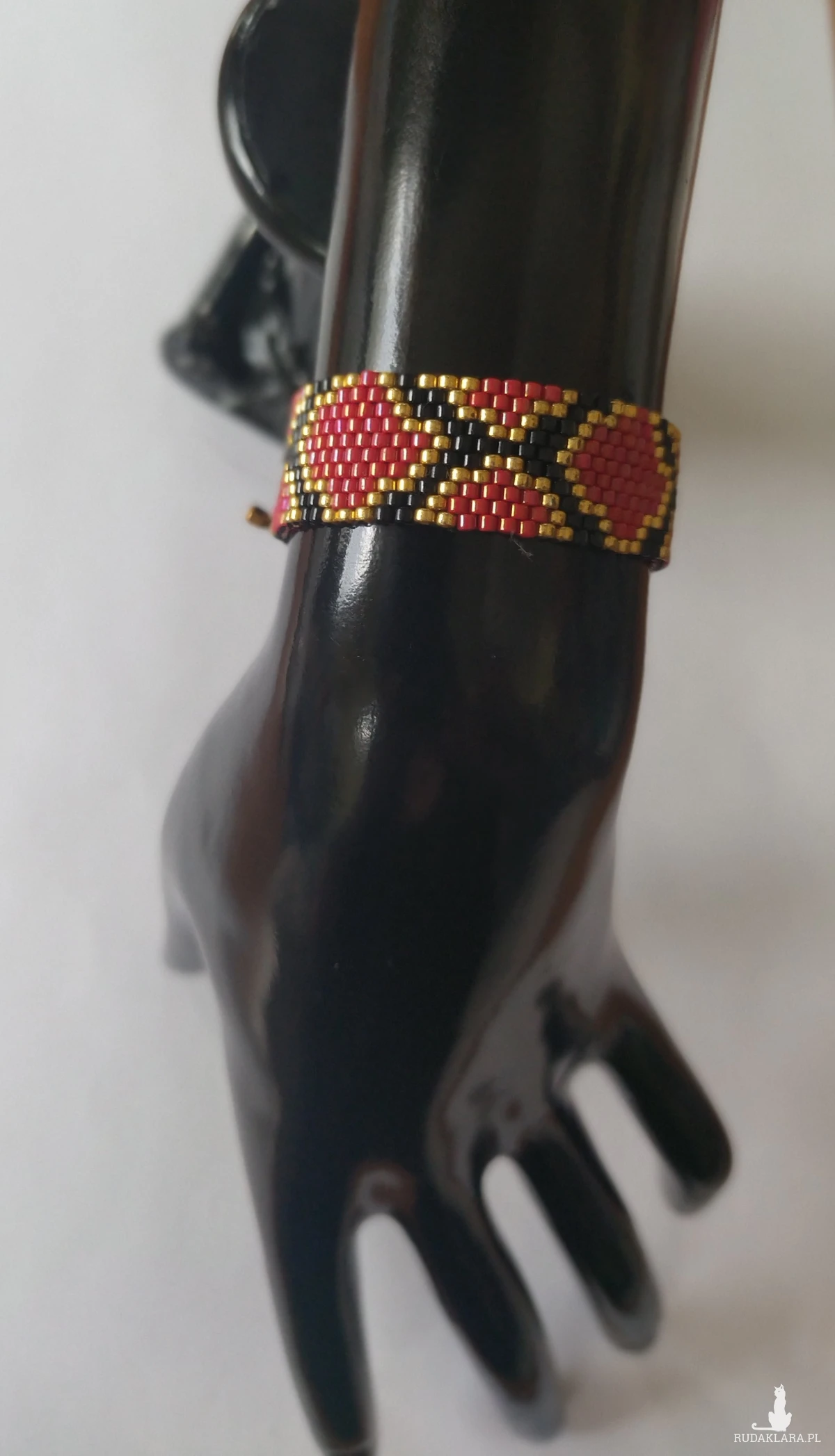 - Japoński Blask Miyuki: Wykorzystałam najlepsze na świecie koraliki Miyuki Delica. Złote elementy lśnią przy każdym ruchu ręki, przyciągając spojrzenia jak magnes.