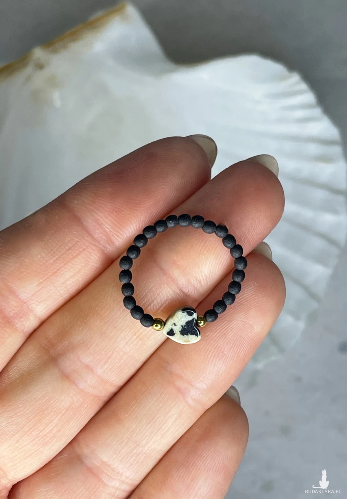 Pierścionek elastyczny wykonany ręcznie z kamieni naturalnych hematytu i Jaspisu Dalmatyńskiego✨