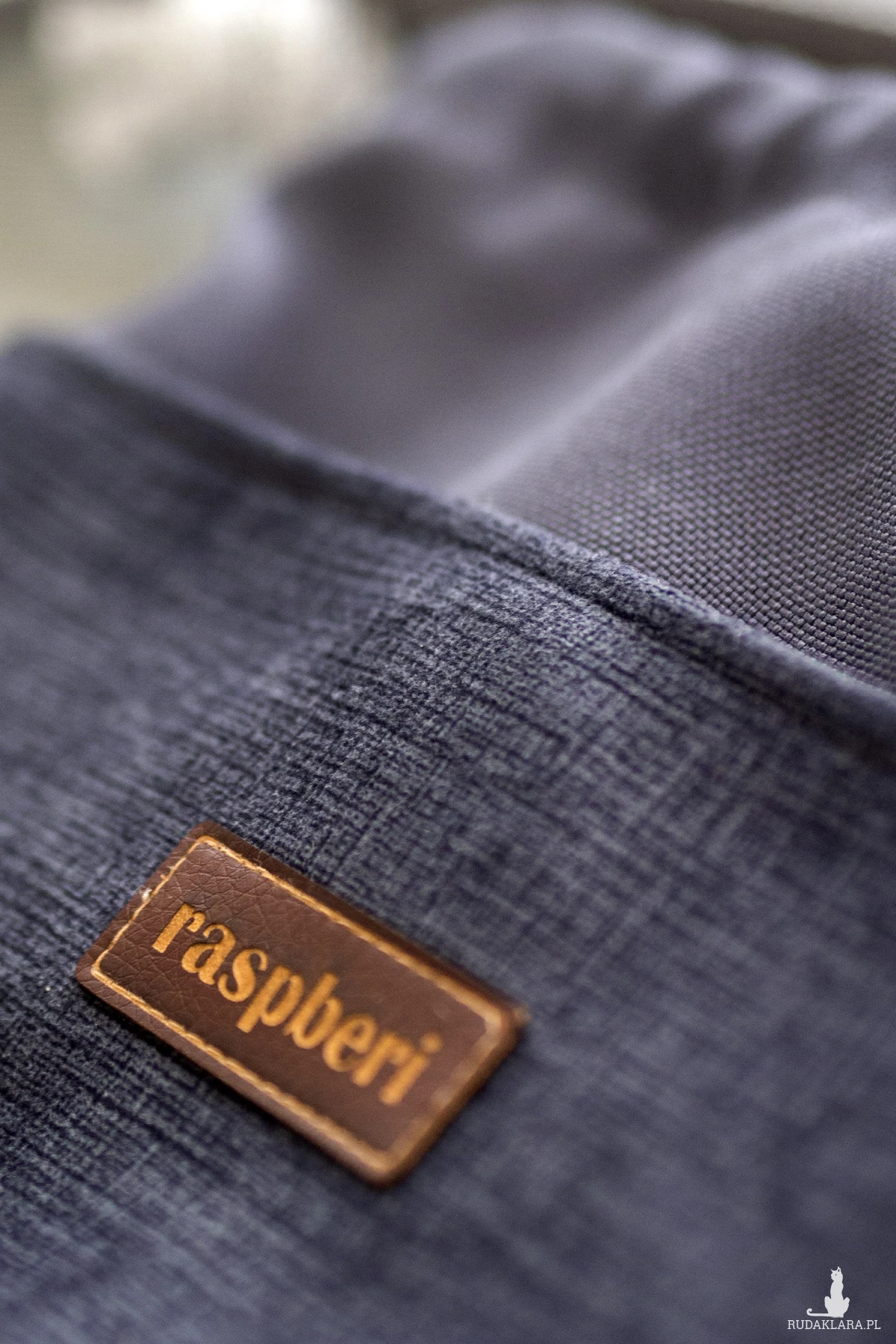 Wykonany z tkaniny w kolorze ciemnoszarym. Z przodu oraz z na tyle torebki kieszenie (np. na telefon czy chusteczki).