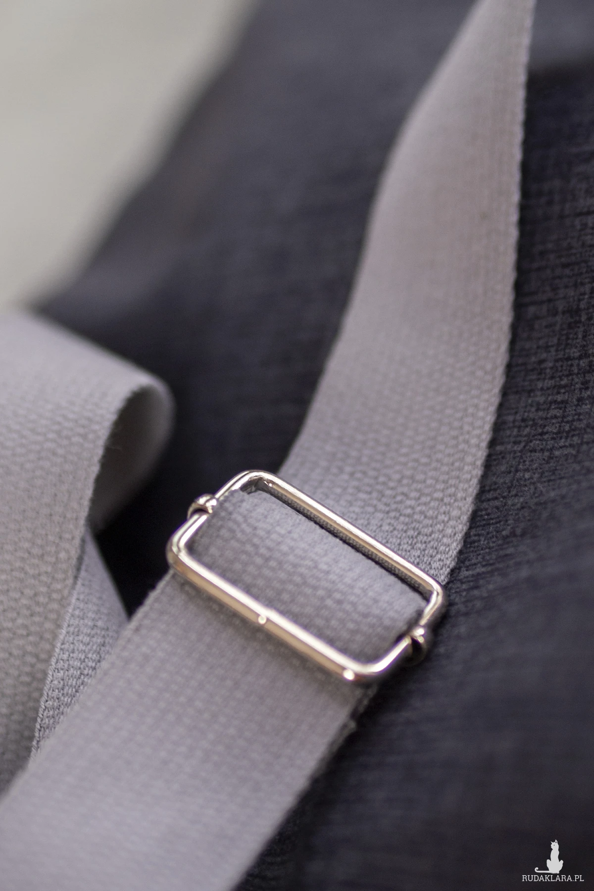 Workoplecak posiada regulowane, bawełniane paski grubości 3cm w kolorze szarym.