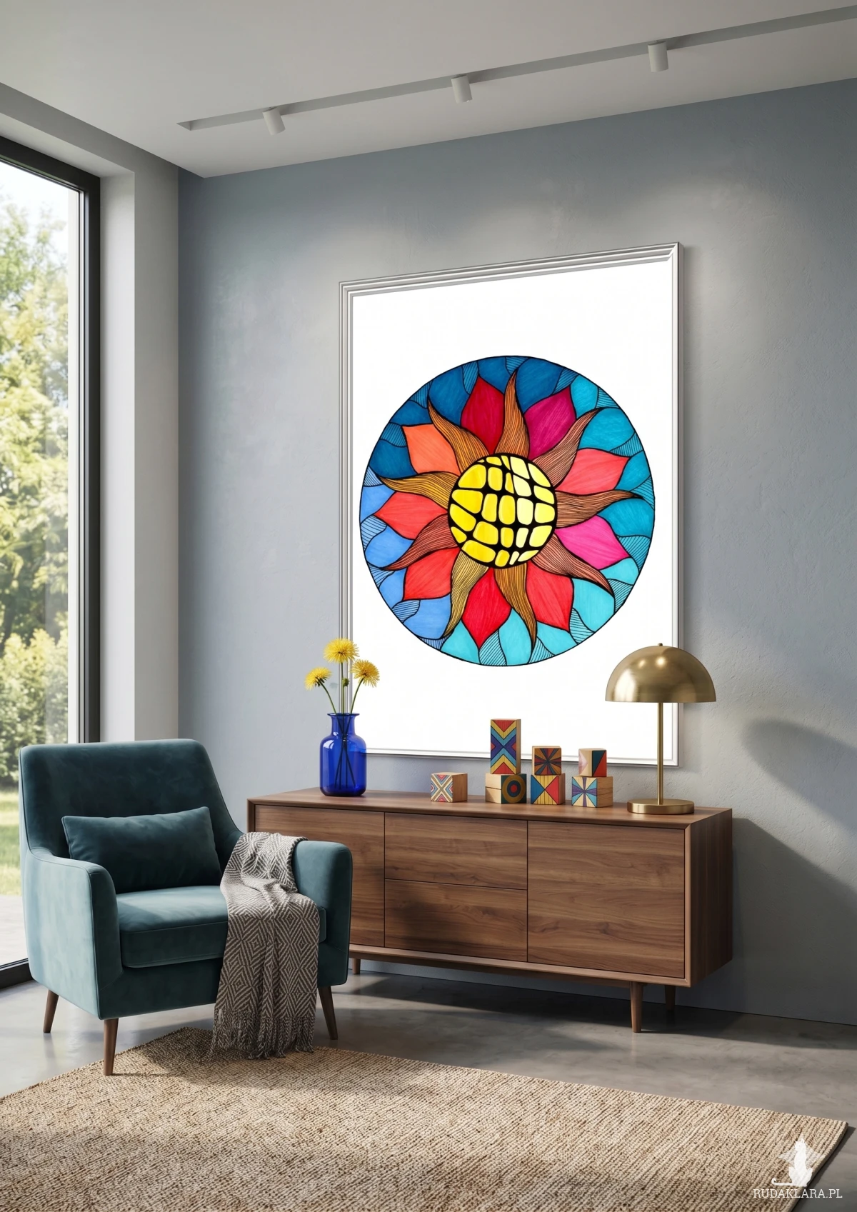 61. SŁONECZNA MANDALA - rysunek, plakat.