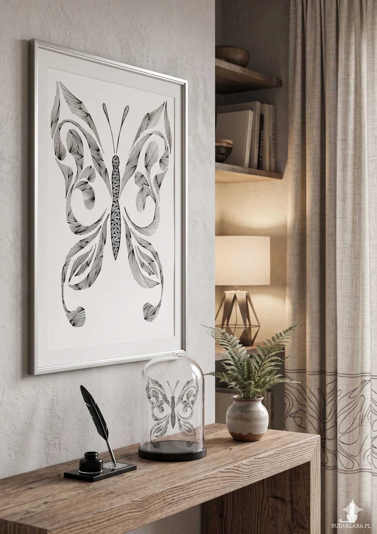Motyl sam w sobie jest archetypem przemiany. W tej liniowej formie, gdzie każdy fragment skrzydeł wydaje się być w ciągłym ruchu i przejściu, emocjonalnie wzmacnia to poczucie nieustannej ewolucji i procesu stawania się. Jest to przypomnienie, że życie to ciągła zmiana, która może być piękna i delikatna.