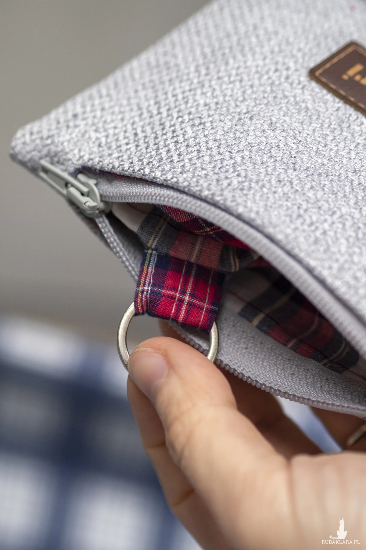 Pokrowiec w środku posiada metalowe kółko do którego można dopiąć klucze.