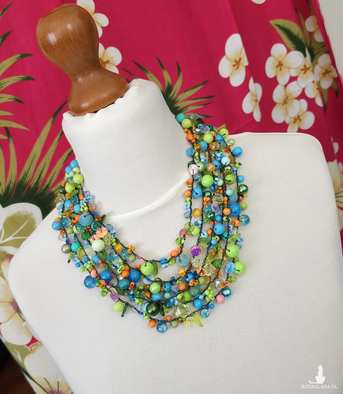 7069 bogaty, lekki naszyjnik, kolia; zielony, niebieski, pomarańczowy naszyjnik