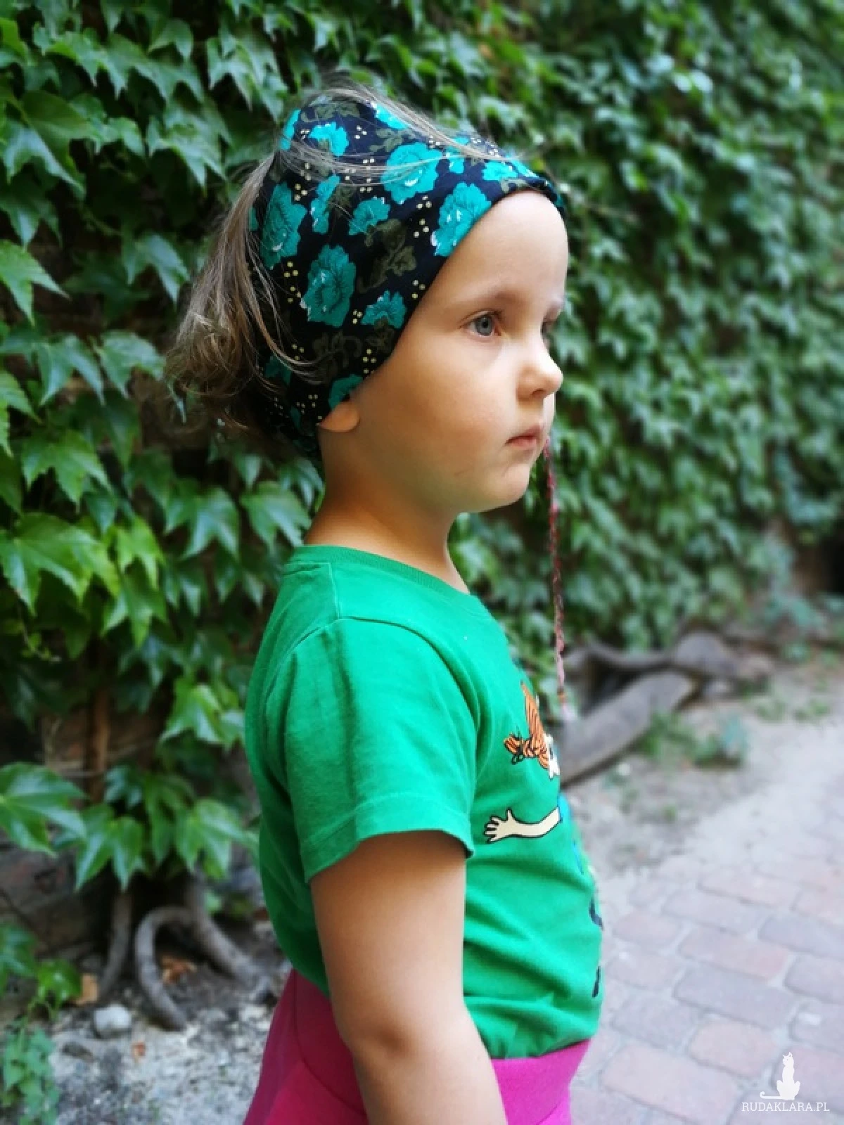 opaska dziecięca letnia kwiaty miła gumka szeroka-box g1- opaska obwód głowy 54-55cm, z tyłu na gumkę, modelka na zdjęciu ma 4 lata