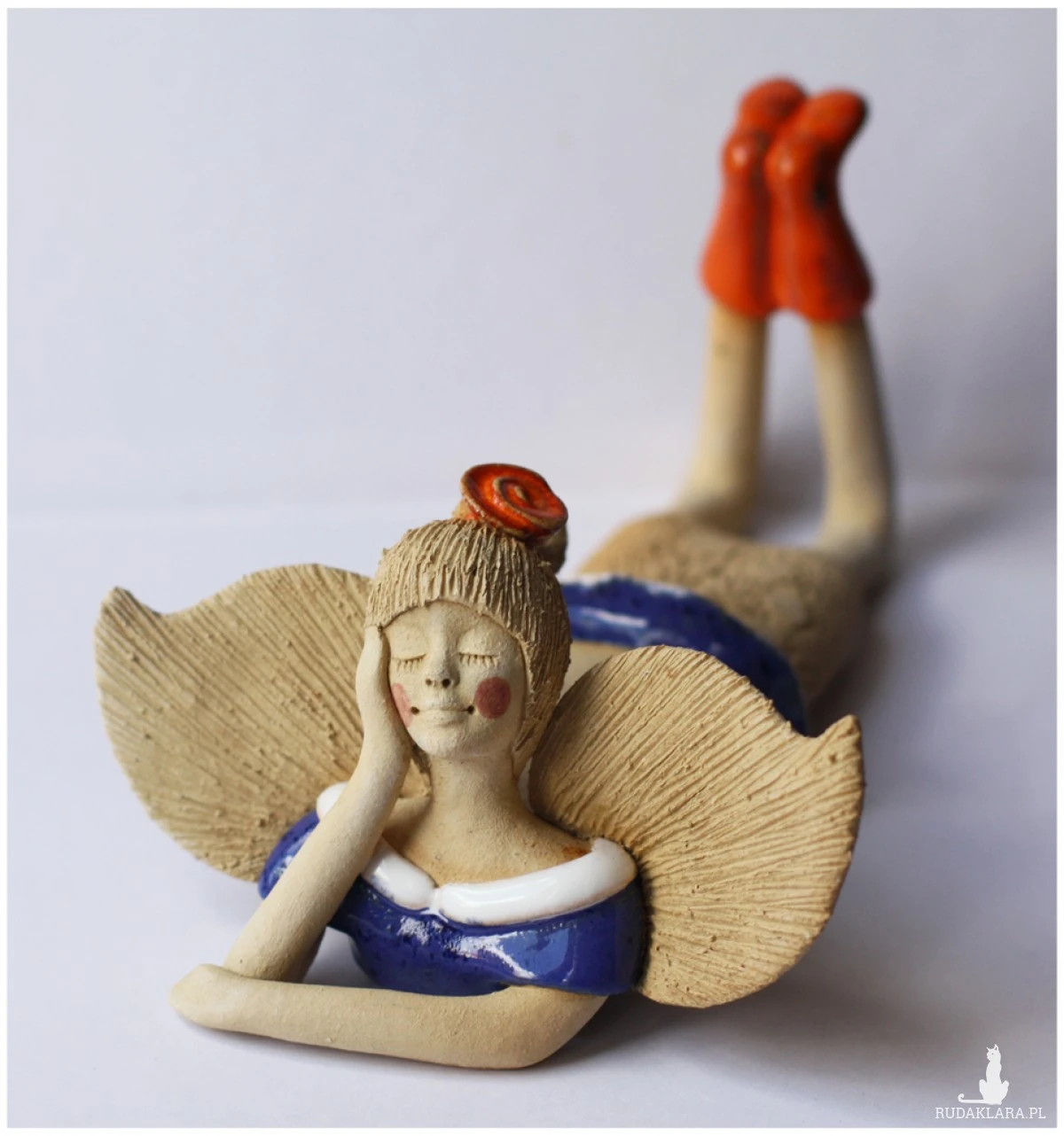 Anioł ceramiczny wykonany z gliny szamotowej, wypalony na biskwit, a następnie szkliwiony w temperaturze 1260 stopni C. Wysokość ok. 22 cm. Idealny jako prezent okolicznościowy lub do ozdoby domu. Przedmiot zostanie nadany w ciągu 10-14 dni roboczych od chwili zatwierdzenia płatności