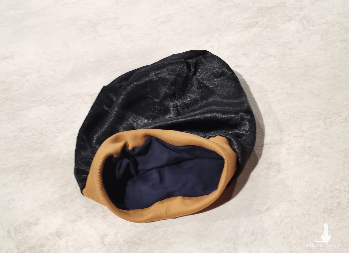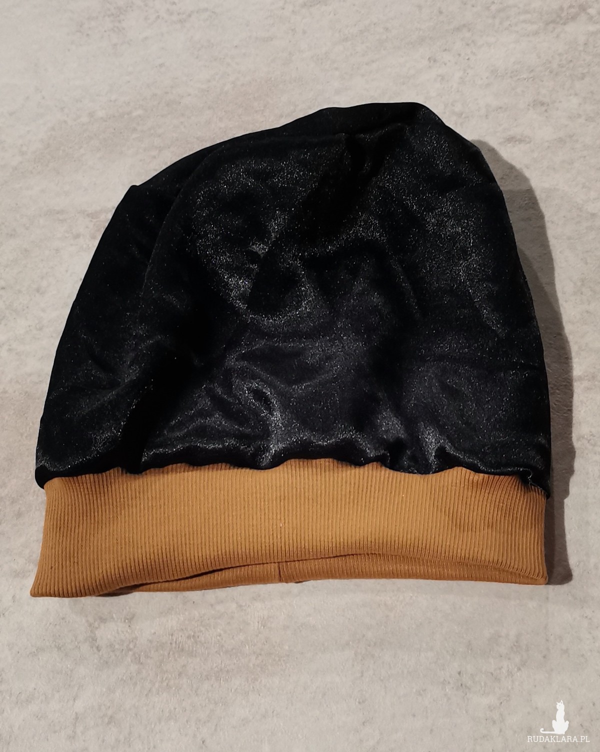 Czapka damska na podszewce, czarna z połyskiem rozmiar uniwersalny, dobra na codzienne noszenie, box f1