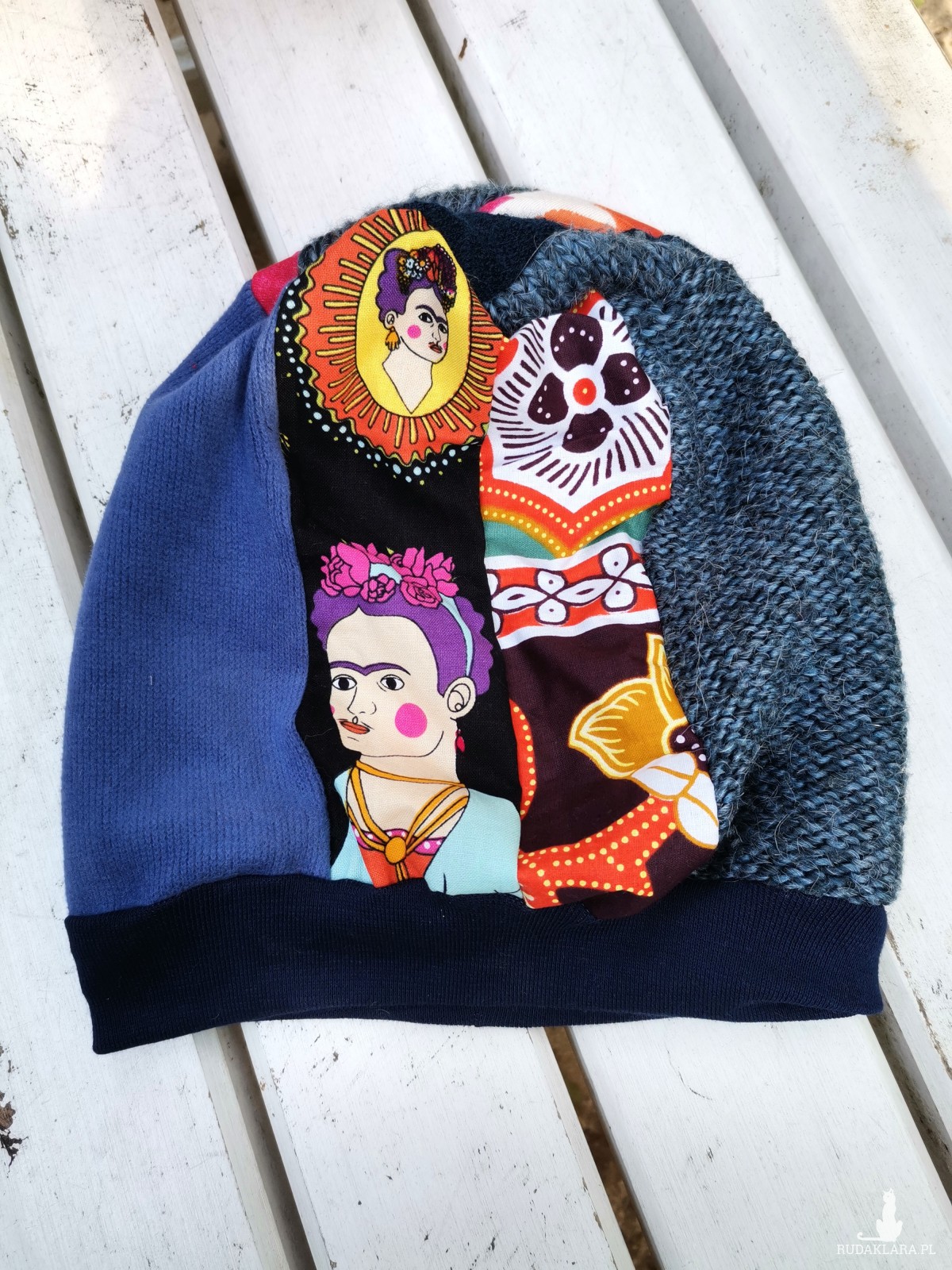 Czapka patchworkowa damska na podszewce z wizerunkiem frida kahlo