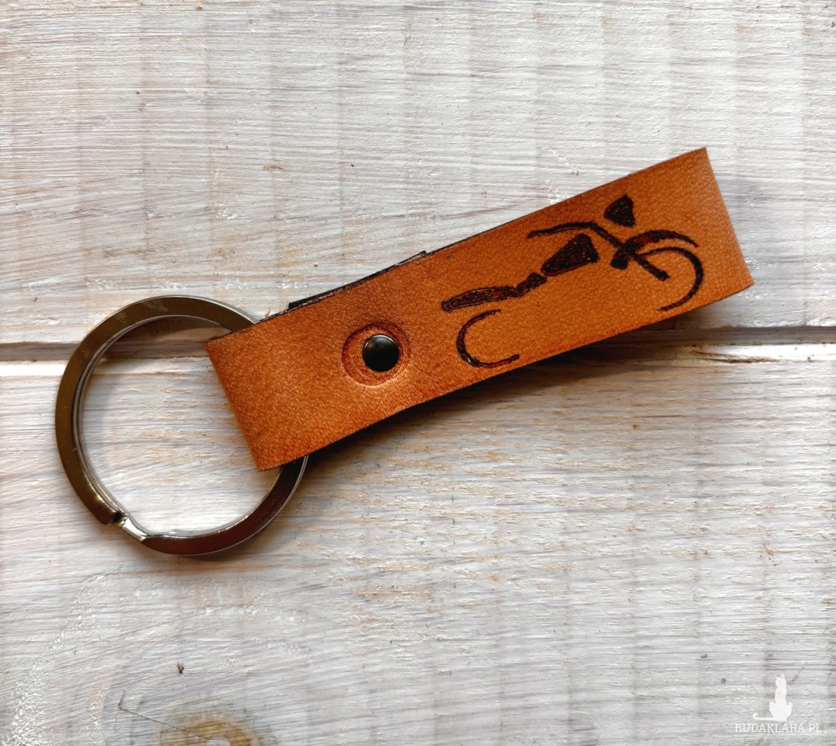 Ręcznie wykonany skórzany brelok z motywem motocykla