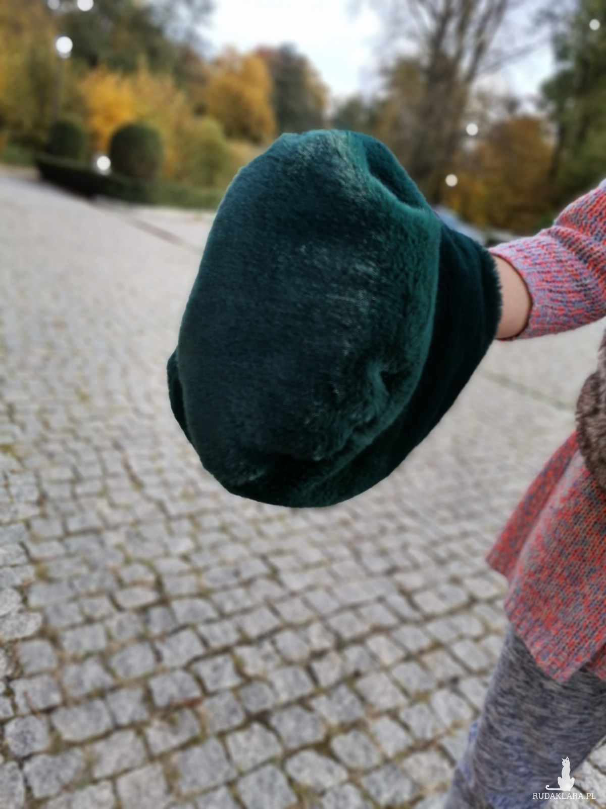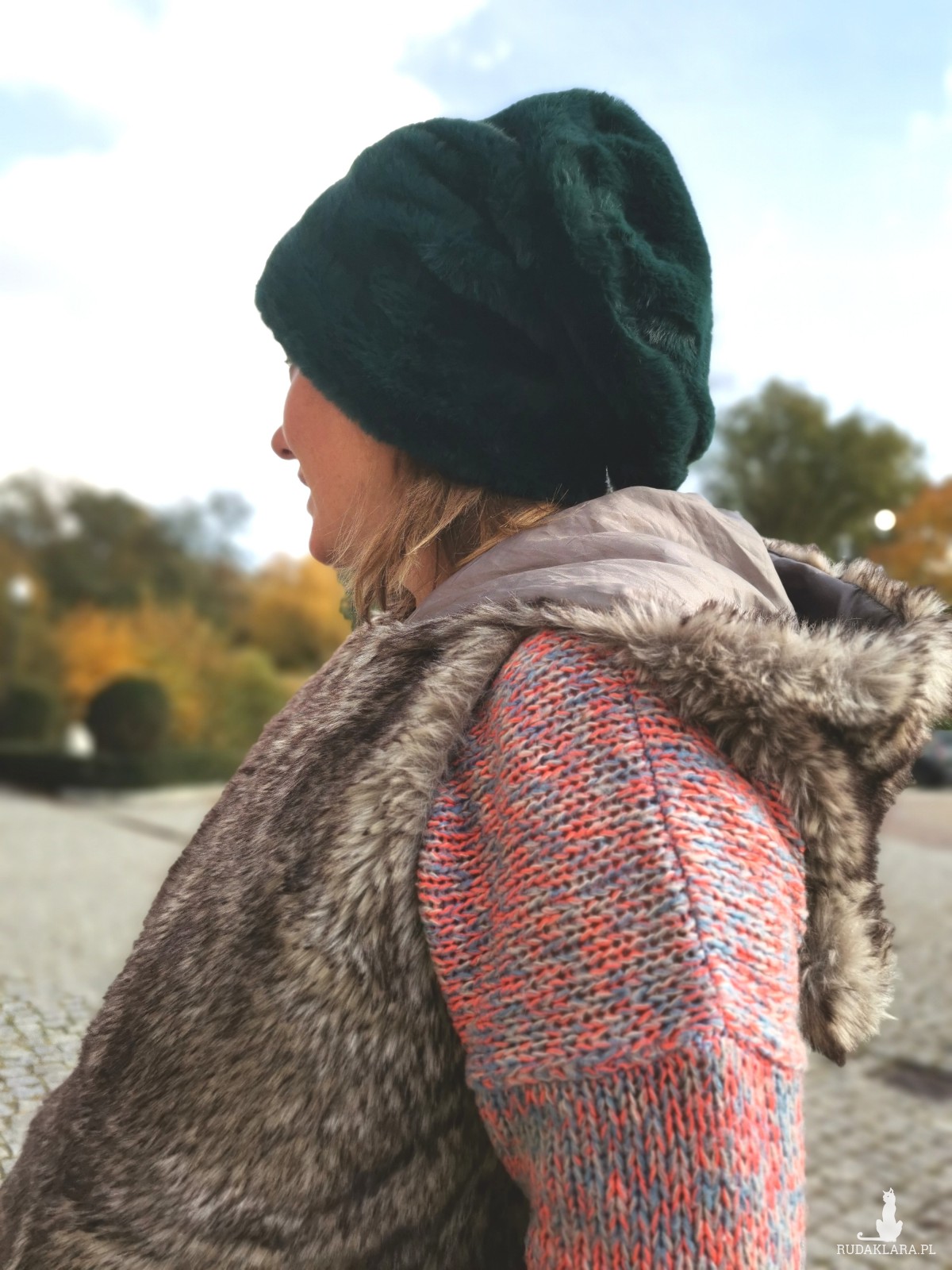 Czapka sztuczne futerko zielona uniwersalna, miękka fantastyczna, box x1 polecam
