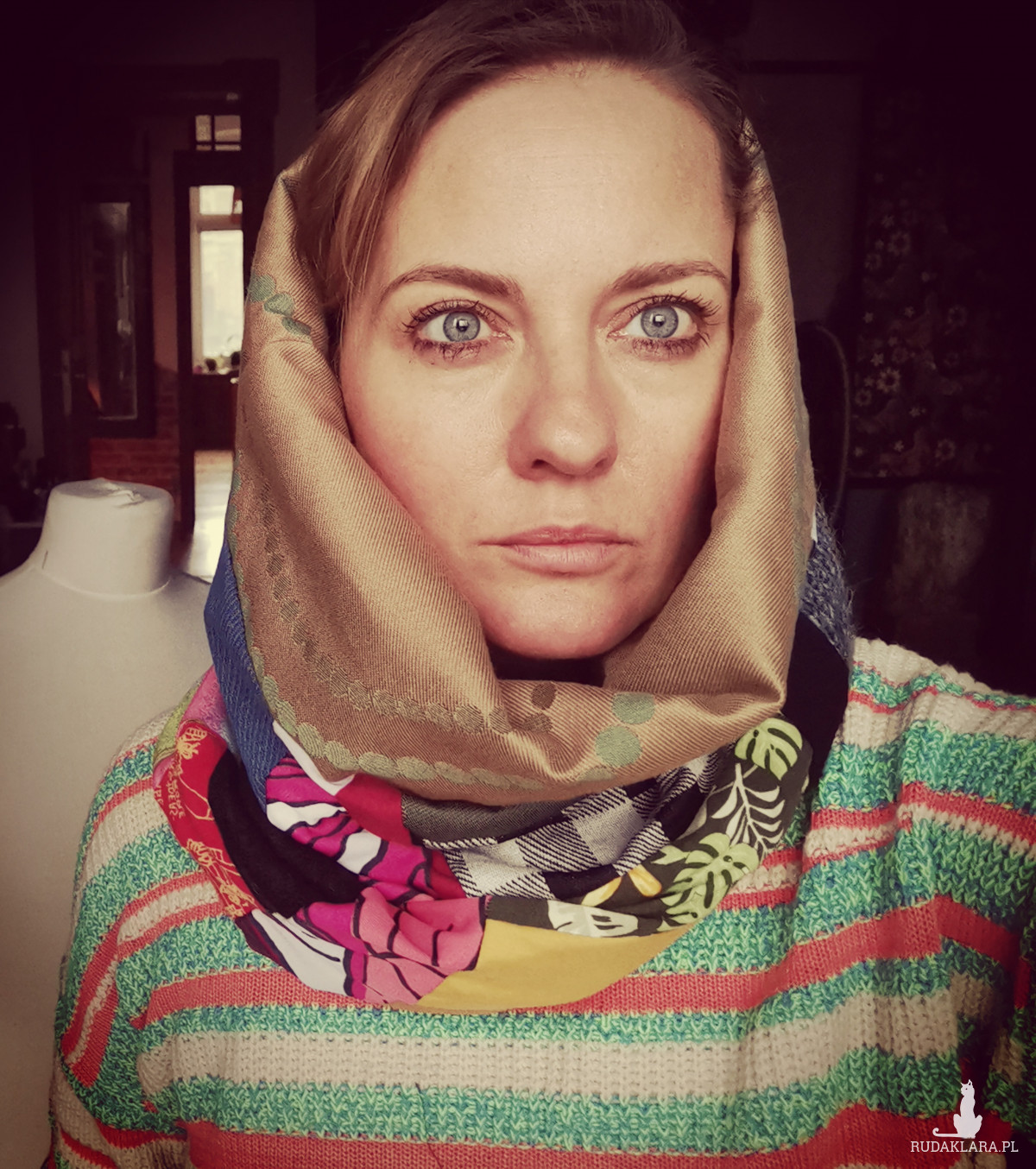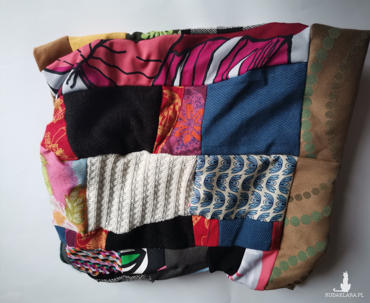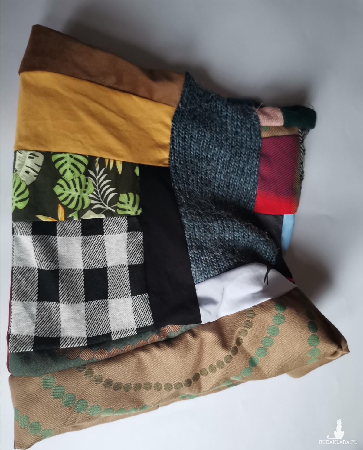 Komin patchworkowy miły i ciepły uszyty według zasady zero waste, polecam box t1