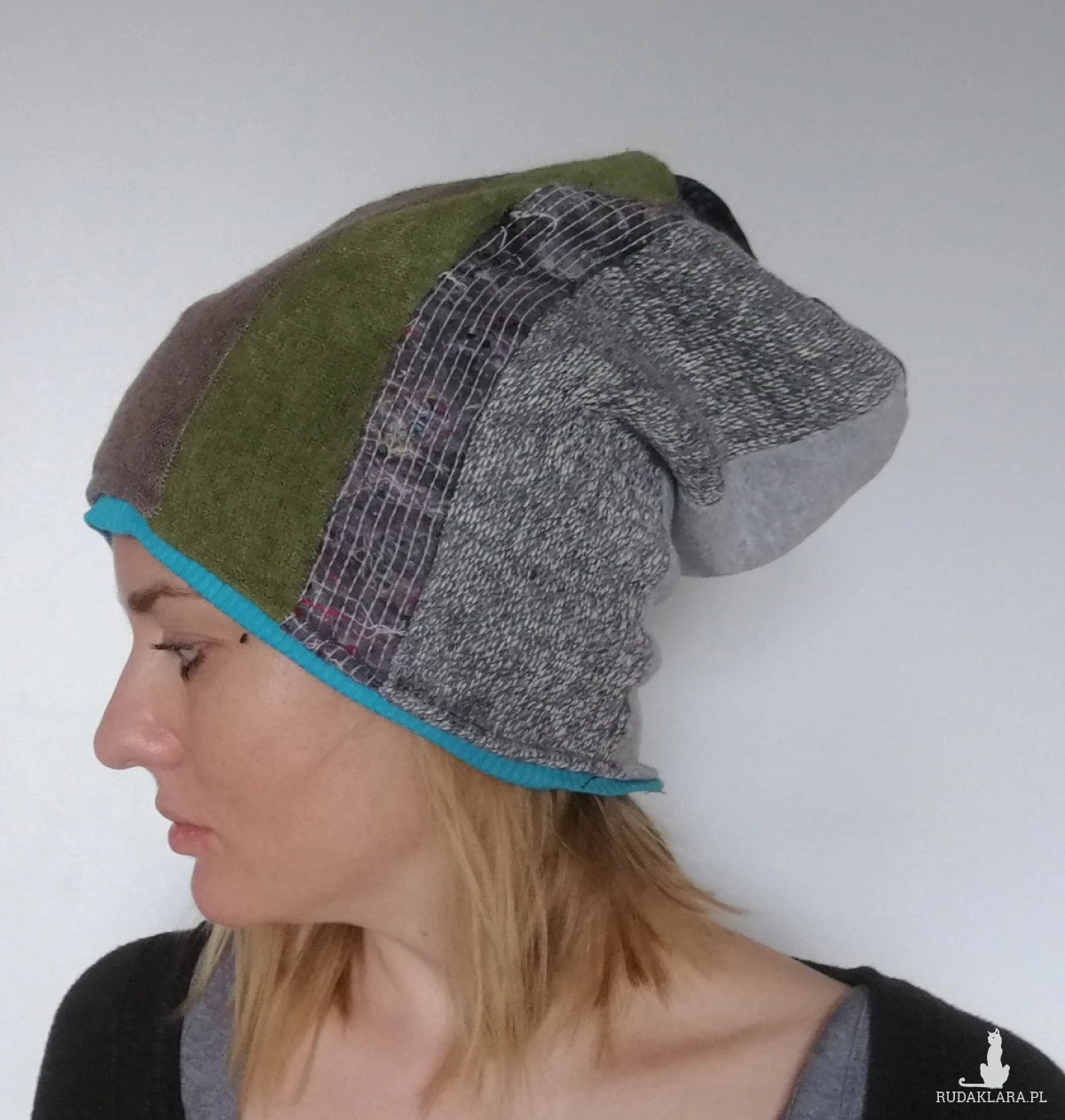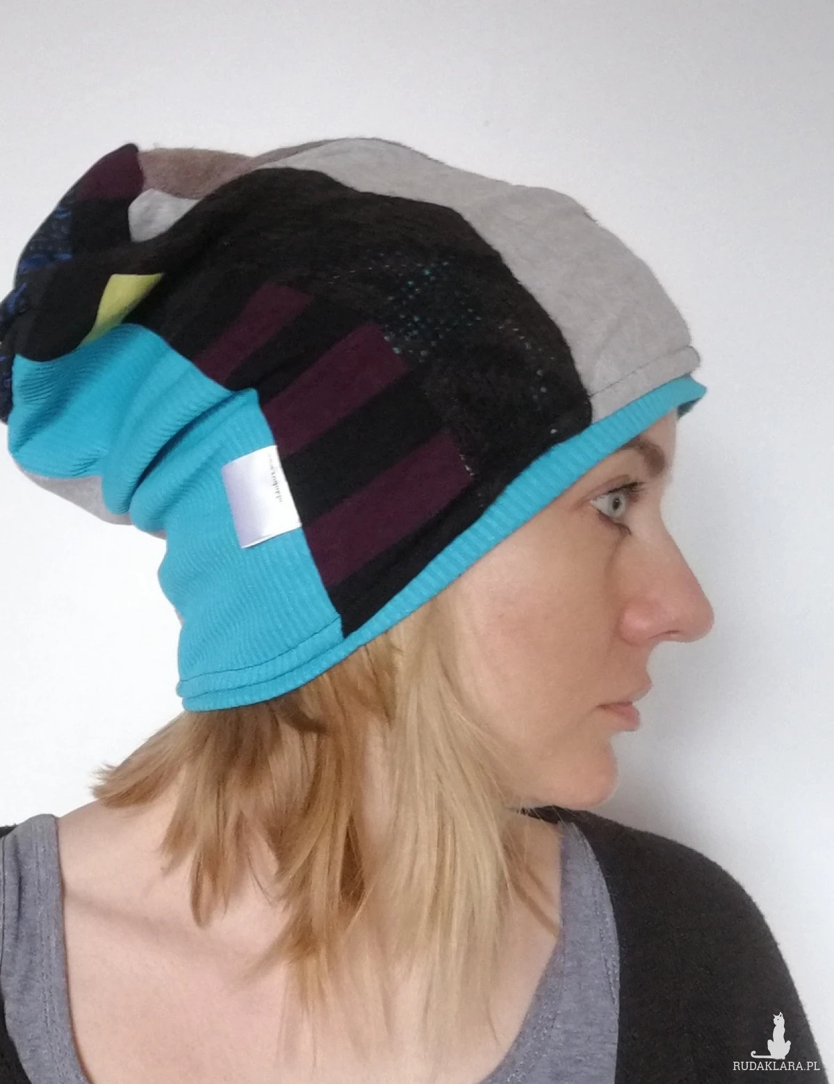 czapka damska ciepła kolorowa patchwork wełna zima