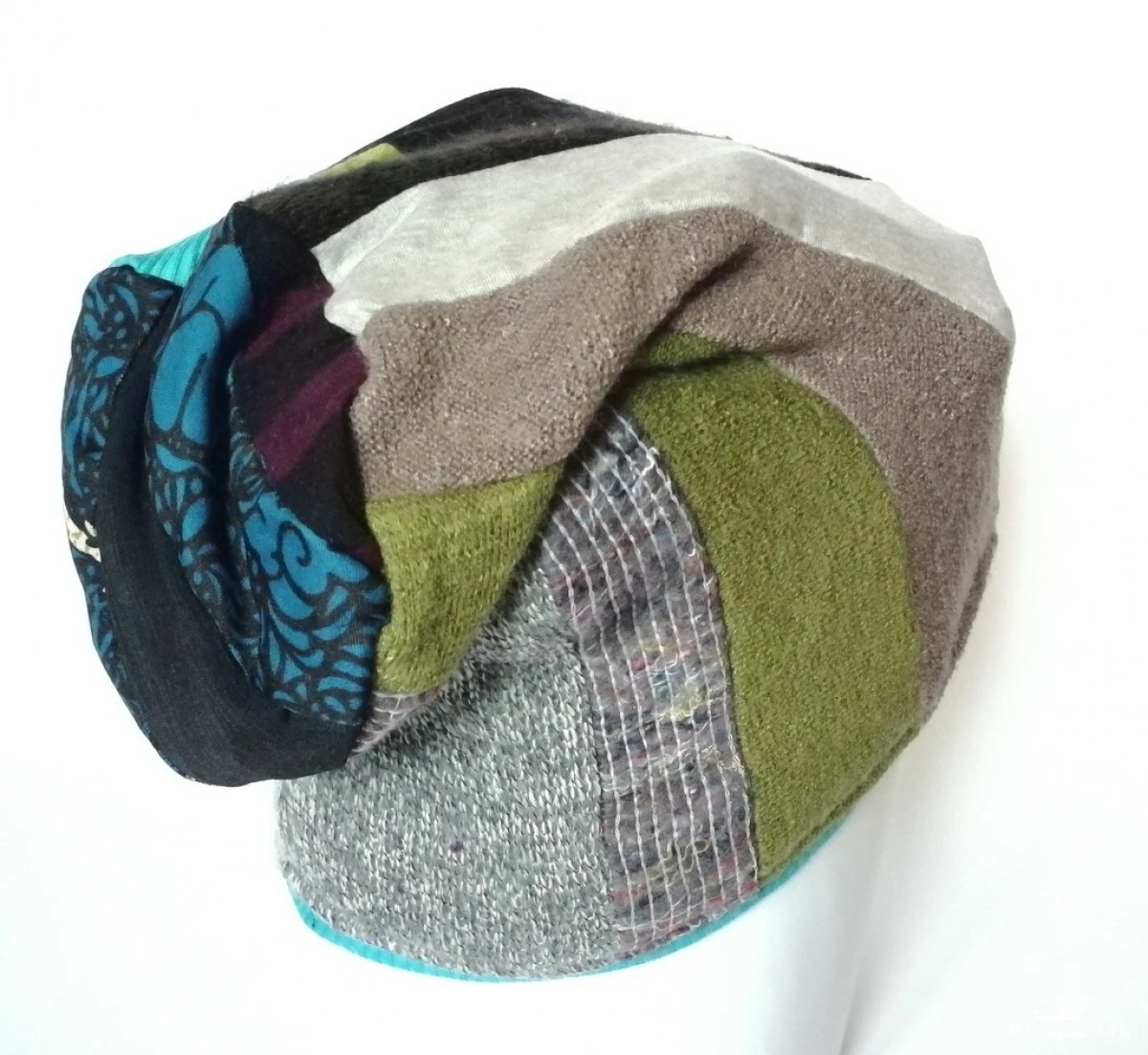 czapka damska ciepła kolorowa patchwork wełna zima-złota rybka zapomniała co dziś komu obiecała-czapka ciepła, miękka, szyta patchworkowo, obwód głowy 60-61cm, polecam pojedynczy egzemplarz