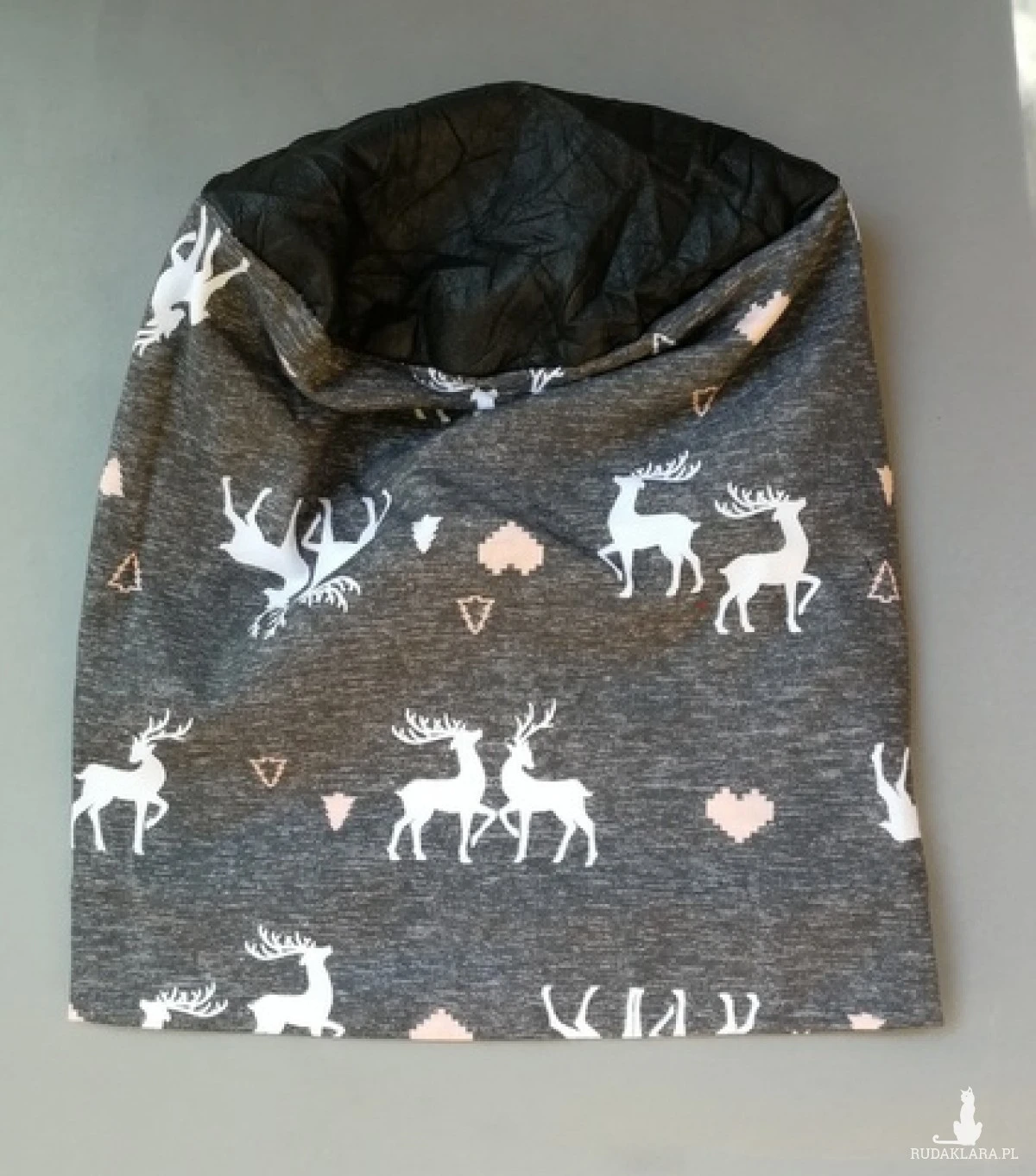czapka damska męska przejściowa renifery- anonimowy dostawca pleśni juz mi sie nie śni- czapka przejściówka, dzianina na delikatnej podszewce, lekko rozciągliwa, obwód głowy 58-59cm, polecam box d1