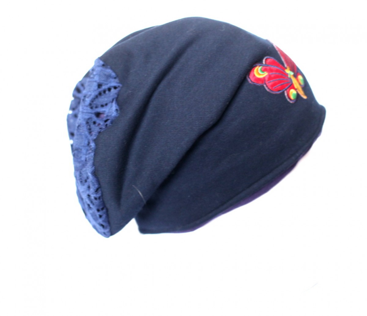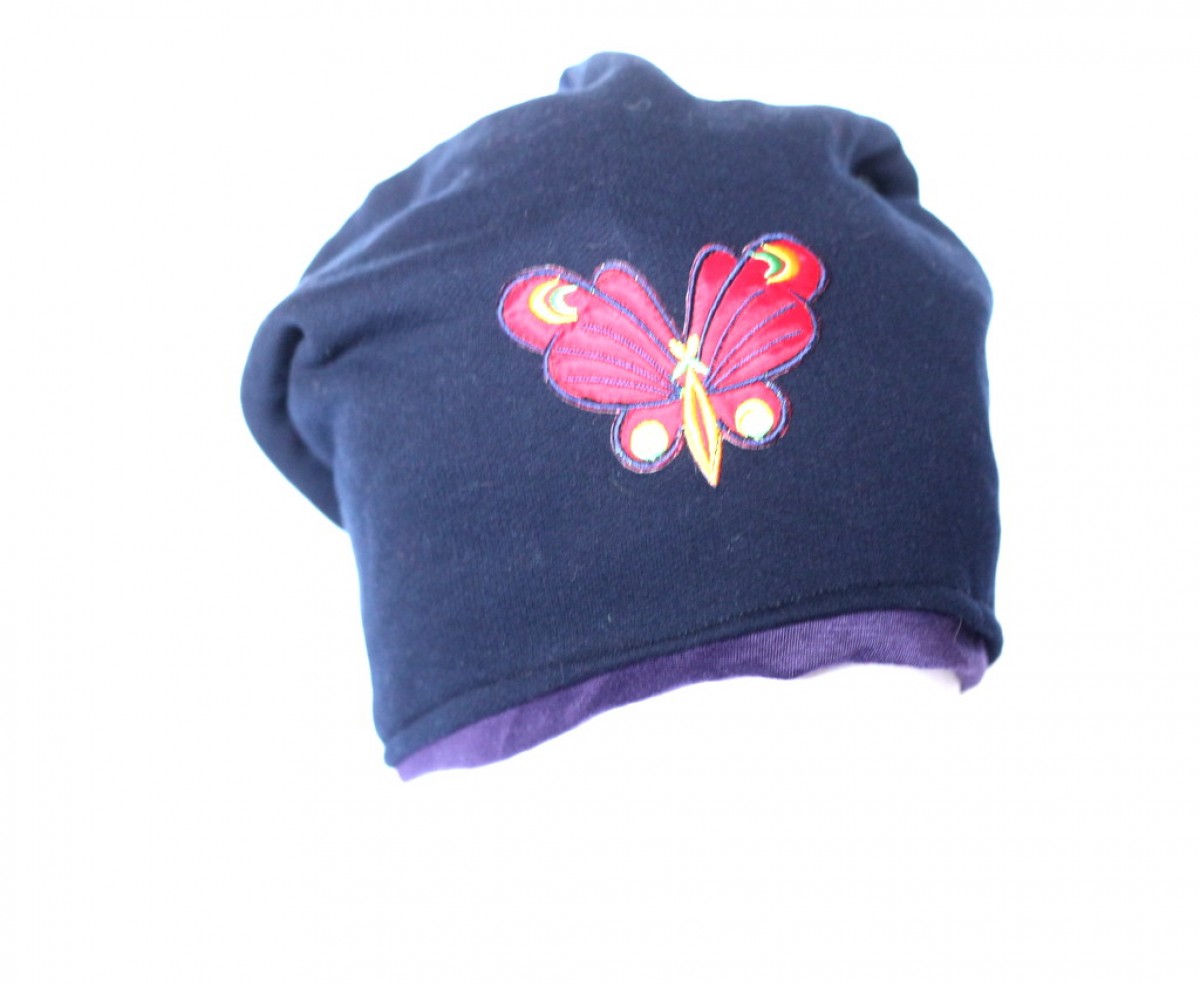 czapka damska z motylem z widoczna podszewką-box d1- czapka dzianinowa na podszewce, obwód głowy 59-61cm, polecam