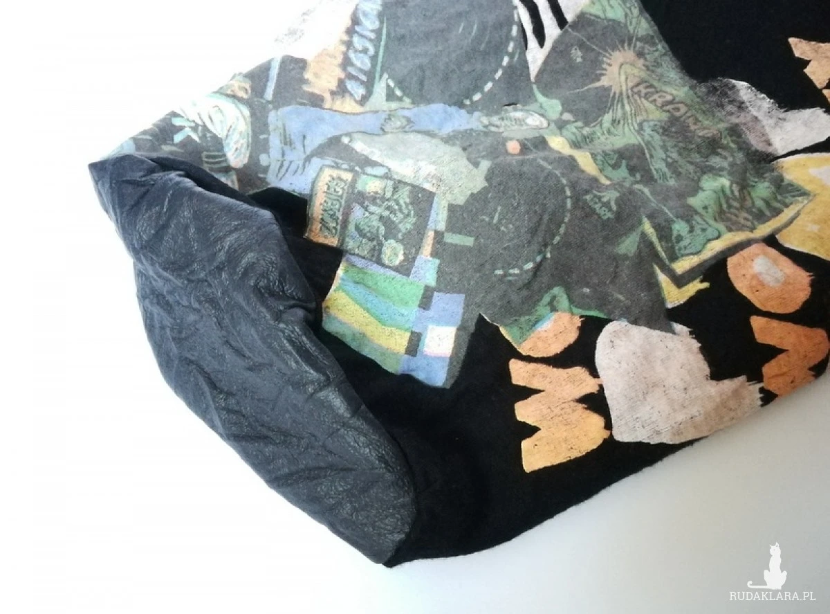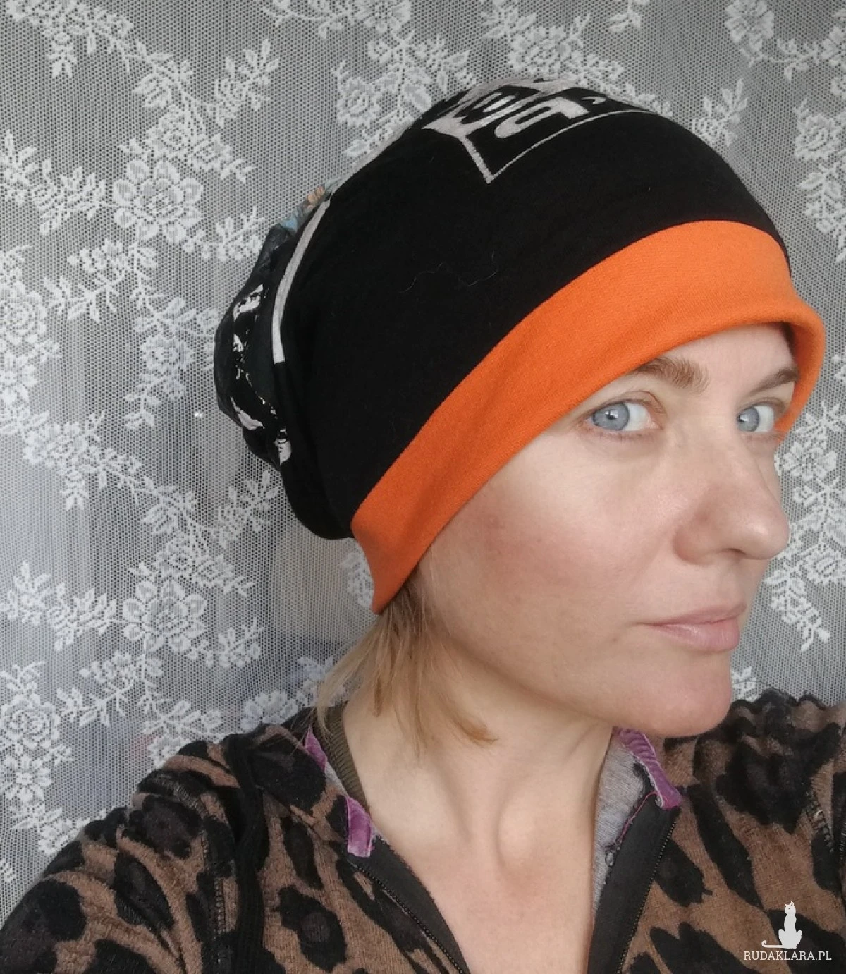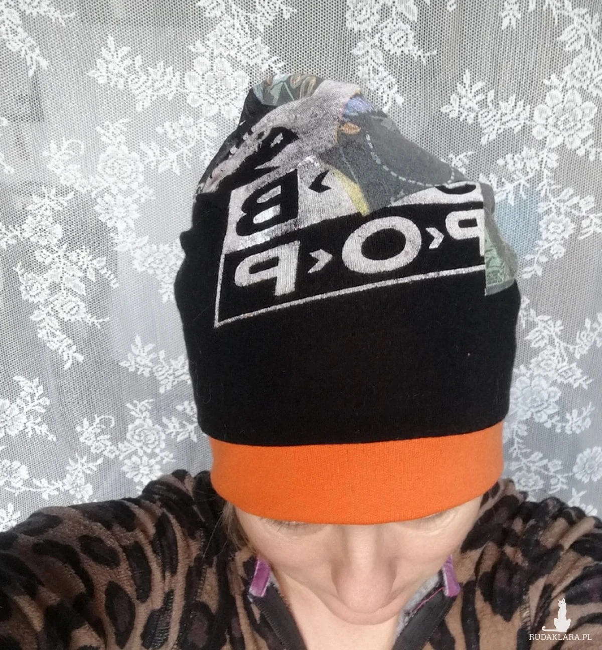 czapka dzianinowa kolorowa boho sportowa etno smerfetka-box 11-czapka dzianinowa kolorowa boho sportowa etno smerfetka częściowa materiały pochodzą z recyclingu, obwód głowy uniwersalny, długość czapki 36cm, na podszewce, góra z ekoskóry, czapka jest odjazdowa, polecam