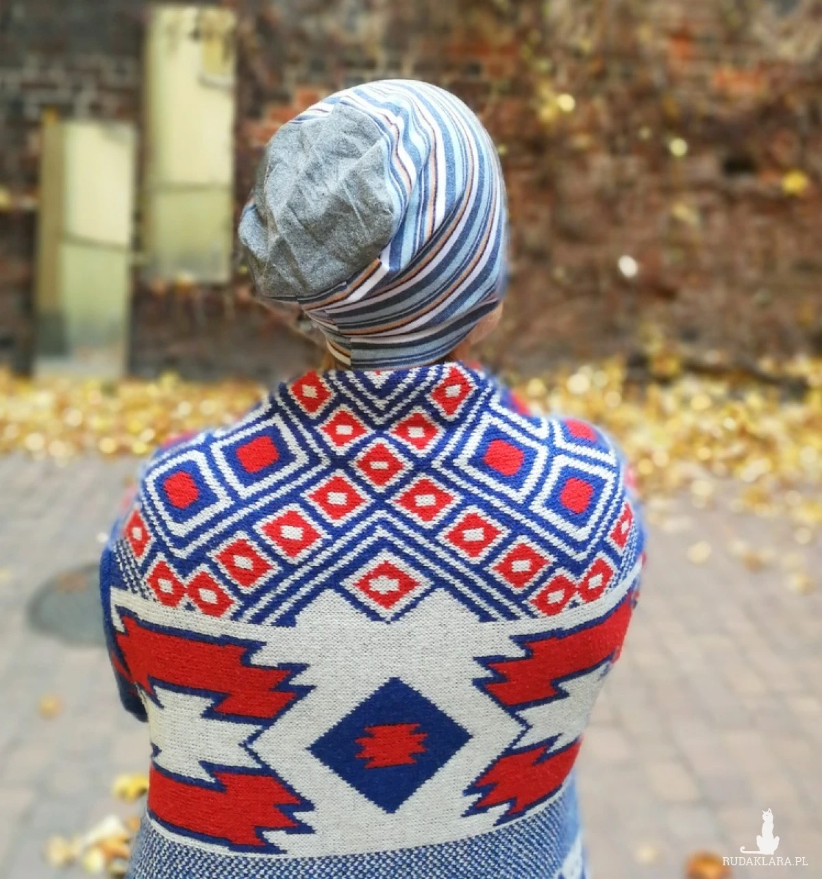 czapka męska damska handmade sportowa w paski-box p1- czapka rozciągliwa, bez podszewki, damsko-męska, niebiesko szara, obwód głowy 58-61cm, dobra na codzienne noszenie,do biegania,polecam