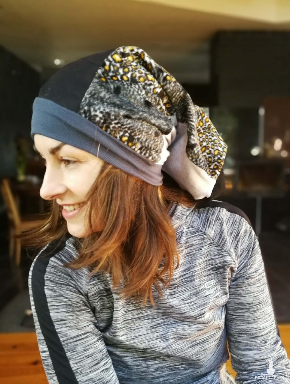 czapka smerfetka długa damska uniwersalna patchworkowa- box waliz- na podszewce, rozmiar uniwersalny, końcówkę czapki można włożyć do środka tworzy się wtedy taki turbanowy kształt, pojedyncza sztuka, polecam