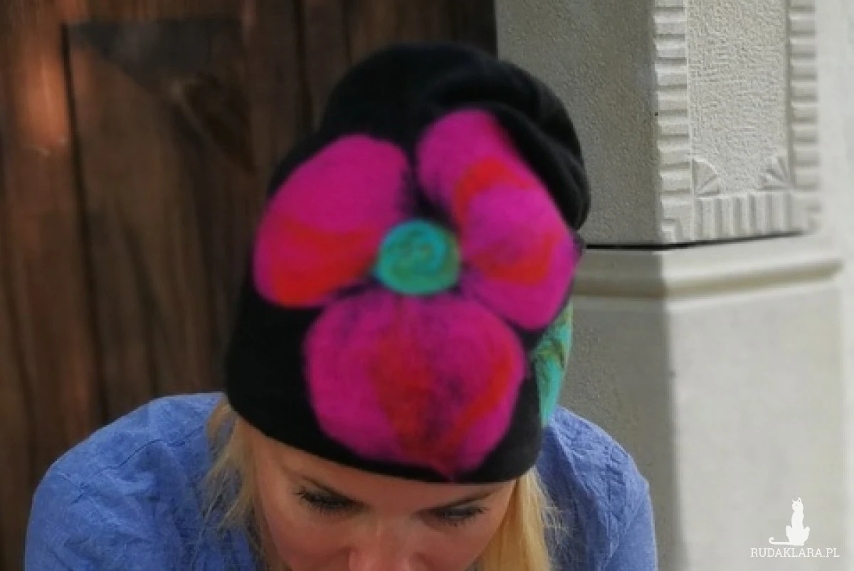 czapka wełniana damska etno boho filc -box d1-czapka handmade na podszewce, spora, 59-60cm,wełniana, filcowana wełną merynosów, bardzo ciepła, fantastyczna, miła, miękko układa się na głowie, niezwykle oryginalna, niesamowicie zwraca uwagę, doskonała na codzienne noszenie jak i na prezent, zawsze możesz ją założyć po basenie i przeżyjesz z mokrą głową:) idealna na wypad w góry,naprawdę superowa -pojedyncze egzemplarze, polecam
