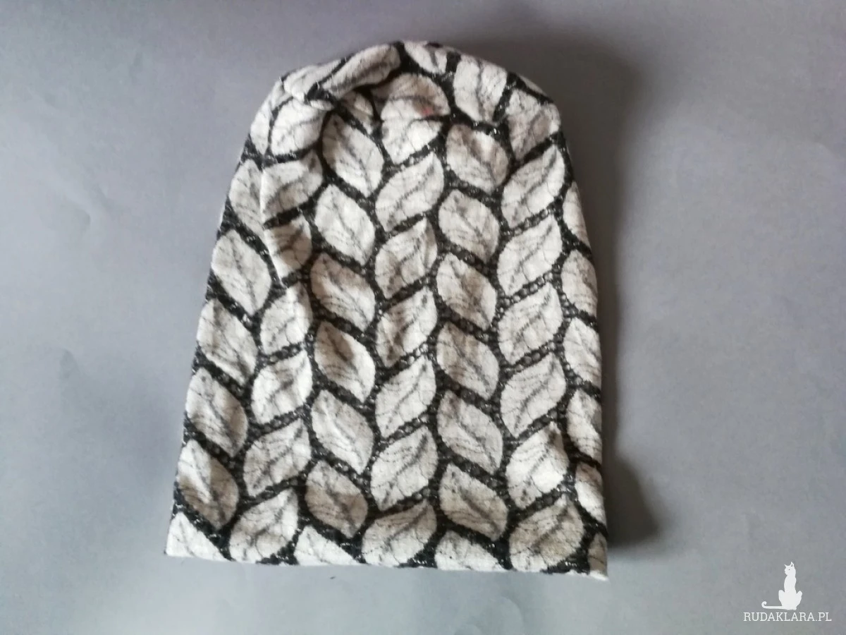 liściasta wzorzysta orientalna czapka smerfetka -box 33- pająk wędrował po ścianie do mola, na śniadanie-czapka damska miękka,dzianina na podszewce, obwód głowy 60-61cm, polecam